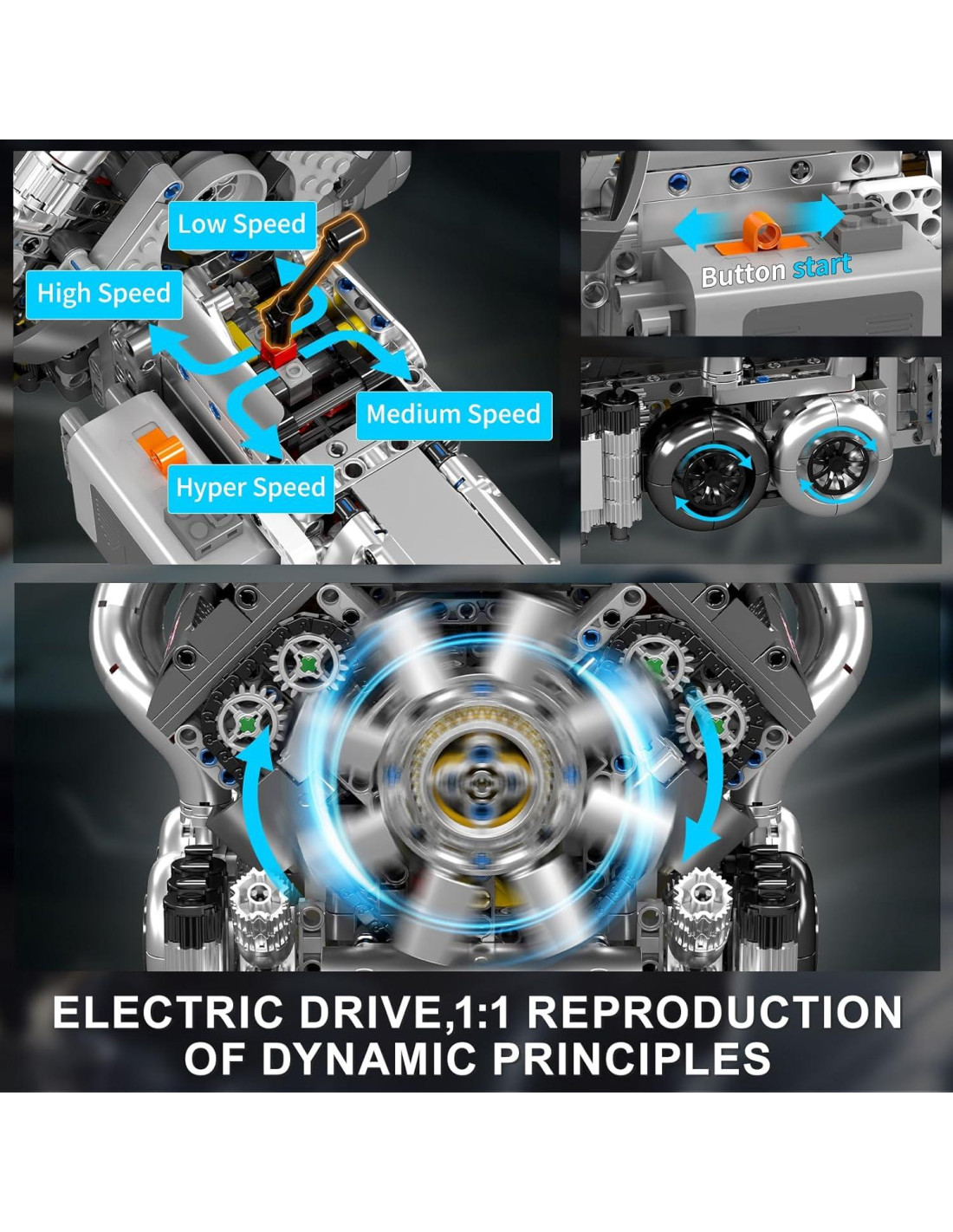 - Versión Dinámica Eléctrica Con 1 motor L y 1 caja de batería. Este Kit de Modelo de Motor V8 Ajustado W16 es de modo eléctrico, que puede funcionar después del ensamblaje. Su diseño compacto puede lograr una alta potencia en un compartimento de motor limitado.