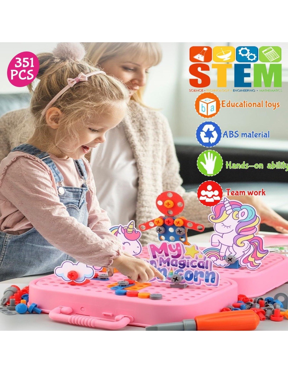 - Diversión y Aprendizaje Infinito: Con este juguete de taladro, los niños pueden embarcarse en un viaje de creatividad. Atornillarán y desatornillarán tornillos de ABS y tableros de mosaico en los agujeros de la caja para crear varios modelos emocionantes - coches, animales, robots y más. Esta experiencia práctica fomenta el desarrollo STEM y conceptos de ingeniería, mientras refina habilidades motoras finas, cognición del color, trabajo en equipo, percepción artística, habilidades sensoriales y cognitivas, habilidades prácticas, imaginación y creatividad. Un tiempo de juego que es tanto educativo como agradable