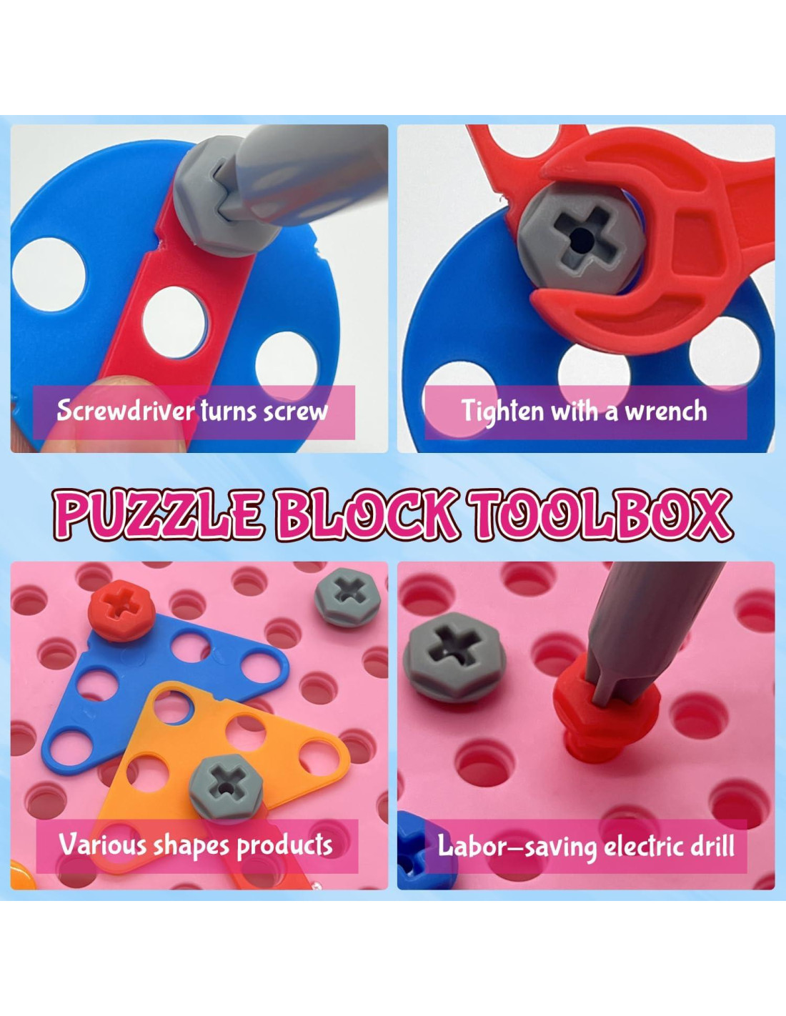- Fácil de Almacenar: ¡No te preocupes más por las piezas perdidas! Esta caja de juguetes de taladro eléctrico cuenta con un diseño de gran capacidad, permitiéndote almacenarlo directamente después de que termine el juego. Los accesorios de almacenamiento no se pierden fácilmente y se pueden llevar contigo. Este juguete viene con varios accesorios de formas y un manual de instrucciones inspirador. Además de los patrones en el folleto, también puedes crear tus propias estructuras geométricas de fantasía