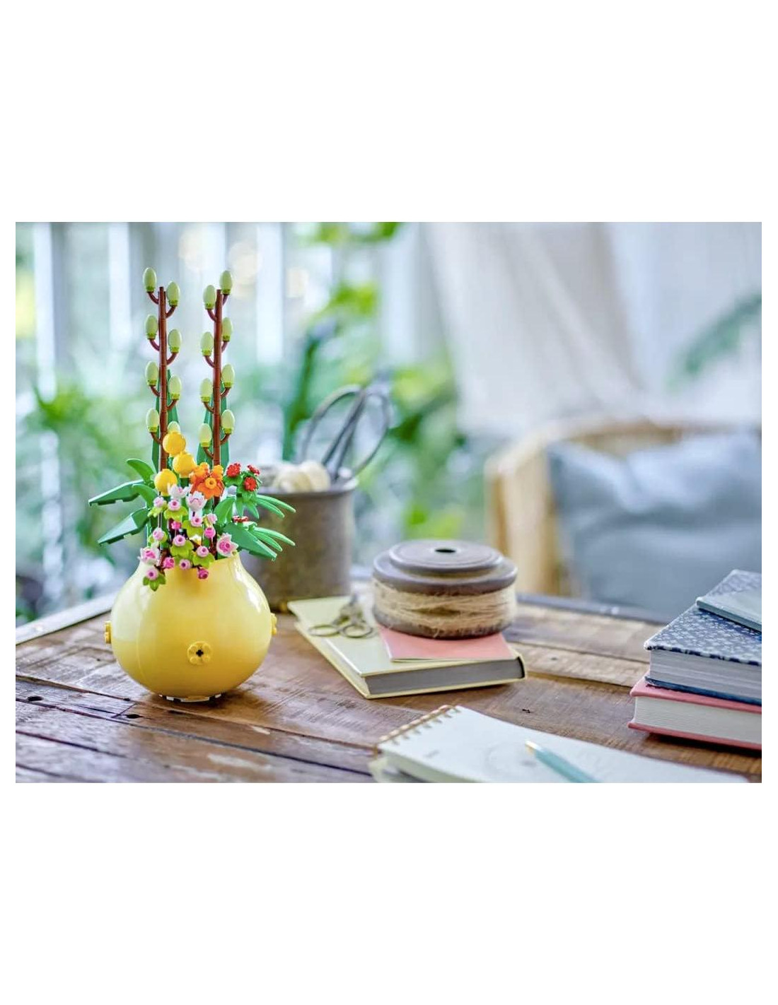- Set de Construcción de Flores LEGO: La maceta incluye versiones LEGO de flores de primavera, incluyendo flor de cerezo, Salix discolor y craspedia globosa