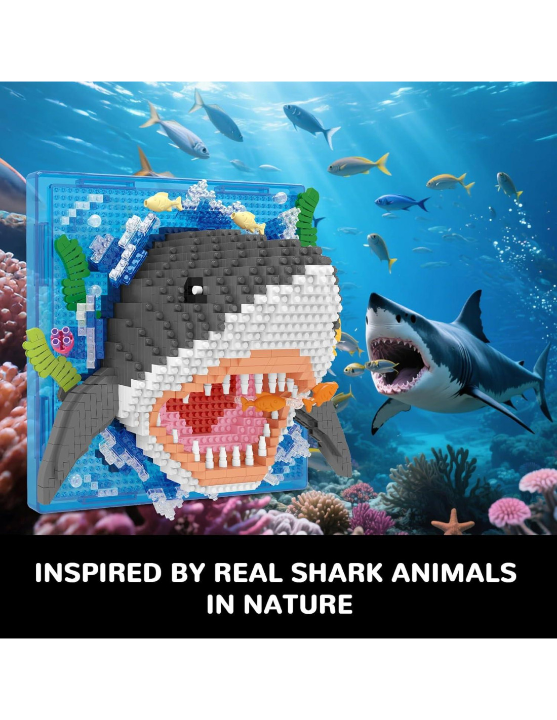 - Regalo Perfecto: Nuestros bloques de construcción de tiburón son un proyecto de construcción altamente creativo y un regalo perfecto para amantes del arte y los animales. Incluye un empaque de caja de regalo exquisito, adecuado para cumpleaños, Navidad, Día de la Madre, Día de San Valentín u otros festivales.