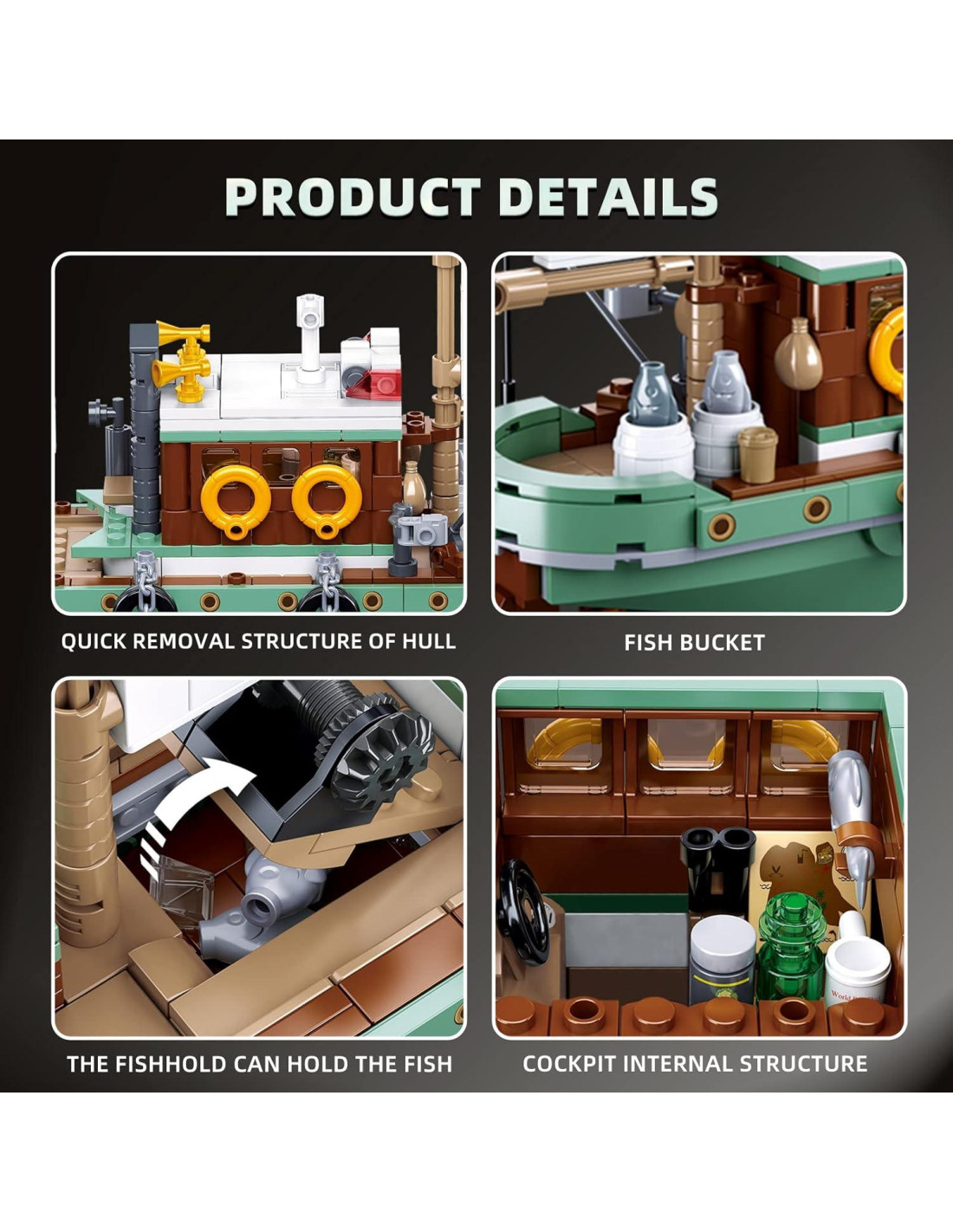 - Rico en detalles: los juguetes de bloques de barco de pesca también son una excelente manera de introducir a los niños en el mundo de la pesca y la navegación. Los niños pueden aprender sobre los diferentes tipos de barcos, las partes que componen un barco y cómo funcionan. También pueden aprender sobre los diversos tipos de equipo de pesca, como cañas, carretes y anzuelos, y cómo usarlos para atrapar peces.