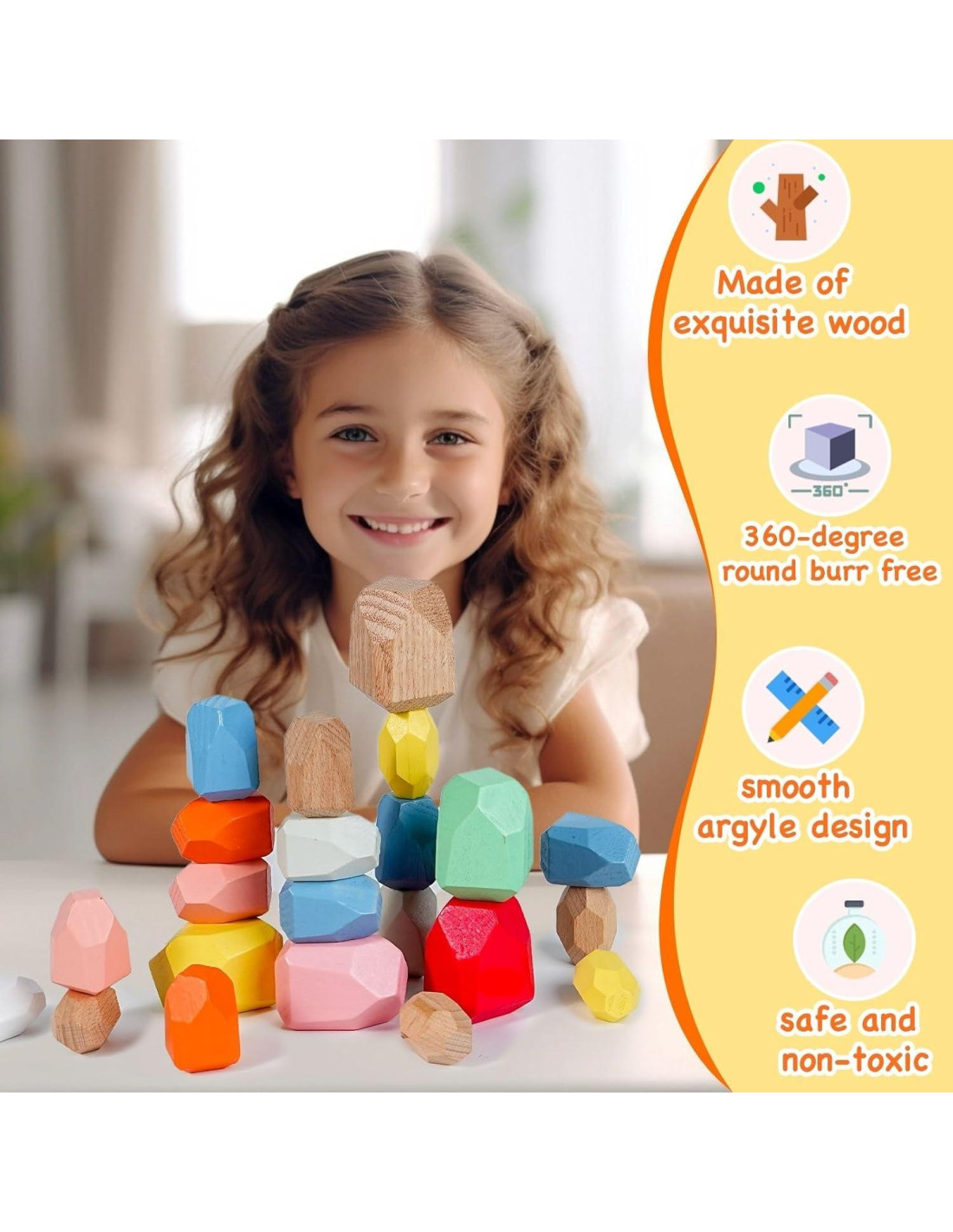 - Elaborado con Cuidado para la Seguridad Priorizando la seguridad de su hijo, nuestras piedras apilables están hechas de madera de primera calidad, acabadas a la perfección para garantizar una superficie suave, libre de astillas y con bordes completamente redondeados. Las piezas son de tamaño adecuado para prevenir cualquier riesgo de asfixia, y utilizamos pinturas no tóxicas y seguras para niños, garantizando un tiempo de juego sin preocupaciones.