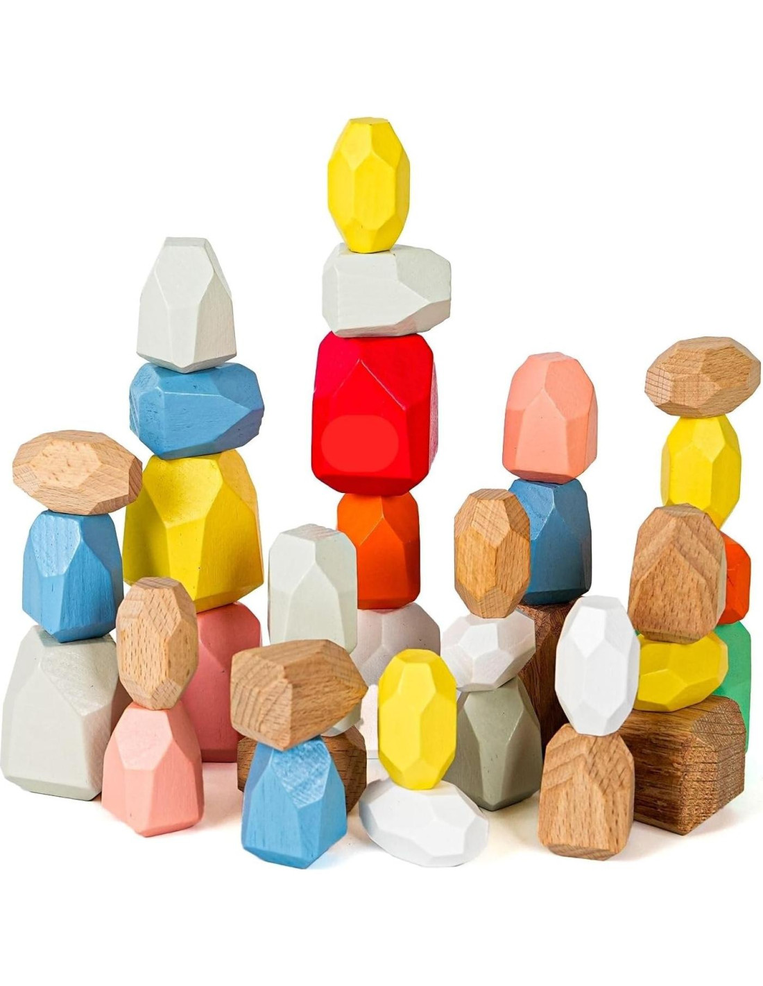 - Piedras Apilables Únicas de 36 Piezas Eleva el tiempo de juego con nuestro distintivo conjunto de piedras apilables de madera. Cada pieza, que varía en forma, tamaño, color y peso, desafía y cautiva a los niños desde los más pequeños hasta los de primaria. Este conjunto está diseñado para estimular tanto la imaginación como las habilidades de resolución de problemas, ofreciendo una alternativa enriquecedora a los juguetes convencionales.