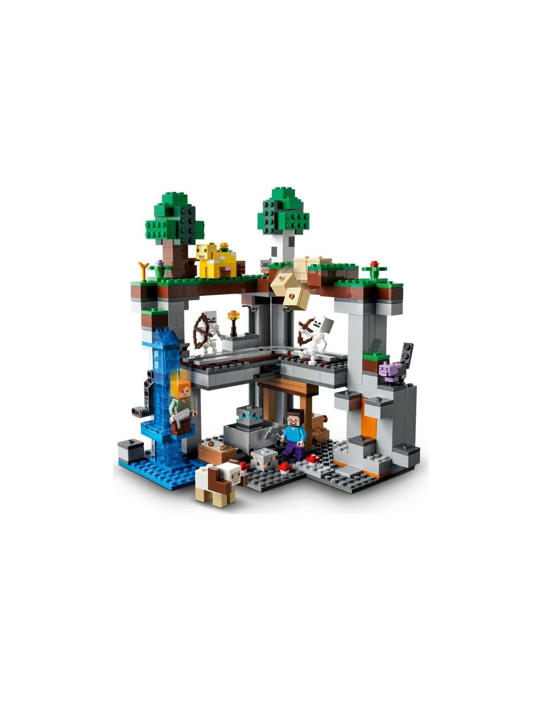 Este juguete de construcción LEGO Minecraft La Primera Aventura (21169) lleva a los jugadores al mundo de Minecraft, donde pueden experimentar y emprender aventuras sin fin con características geniales, personajes populares y criaturas asombrosas. Este juguete creativo recrea uno de los entornos más cautivadores en los videojuegos en línea. Incluye figuras de Steve y Alex, 2 esqueletos, un gato teñido, una oveja con cuernos, un fleurimeuh y características divertidas como un ascensor de agua, rieles colapsables, bloques de tierra resbaladizos y explosiones. Los jugadores deben luchar contra criaturas hostiles y evitar trampas ocultas en la Cueva de LEGO Minecraft mientras exploran esta estructura de Minecraft de 3 niveles altamente detallada. Los sets de LEGO Minecraft ofrecen a los fanáticos de Minecraft una nueva forma de jugar su juego favorito, con personajes, escenas y características que cobran vida en una mezcla imaginativa de ladrillos y piezas de LEGO. Si conoces a un niño de 8 años o más que sea apasionado de Minecraft, le encantará recibir este juguete para su cumpleaños o Navidad.