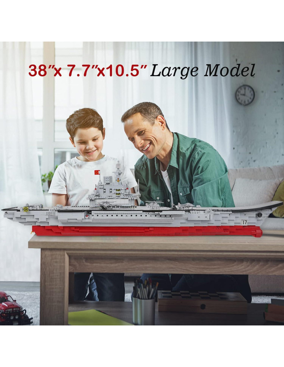 - El modelo terminado de portaaviones mide 96.5 cm de largo, 19.5 cm de ancho y 26.7 cm de alto. ¿Tendrás un sentido de logro después de tener un modelo tan grande que también es una decoración ideal? La vida no es fácil, si no te sientes bien, nuestros bloques te ofrecen un mundo inmersivo de bloques de construcción que podría relajarte y liberar estrés.