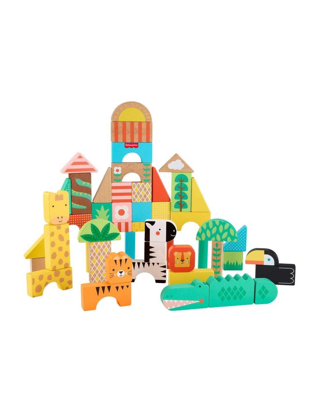 Los niños pequeños pueden apilar horas de juego salvaje de construcción con el set de Bloques de Madera Jungle de Fisher-Price. Este set de construcción temático de animales incluye 50 bloques coloridos hechos de madera de fuentes certificadas por el Consejo de Manejo Forestal (FSC-N004566). Los niños pueden apilar y construir 6 diferentes animales exóticos, incluyendo un caimán, jirafa, león, cebra, tucán y tigre, además de sus hábitats correspondientes. Para mayor diversión, los niños pueden mezclar y combinar los bloques apilables para construir nuevas creaciones salvajes. Los colores y decoraciones pueden variar.
