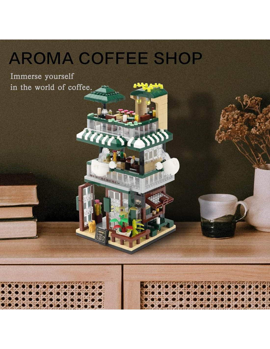 - Buena calidad: El conjunto de bloques micro de la colección cafetería está hecho de material ABS, contiene 1025 partículas de bloques de construcción. Es lo suficientemente colorido para captar la atención y se ve realmente lindo en una estantería o escritorio.
