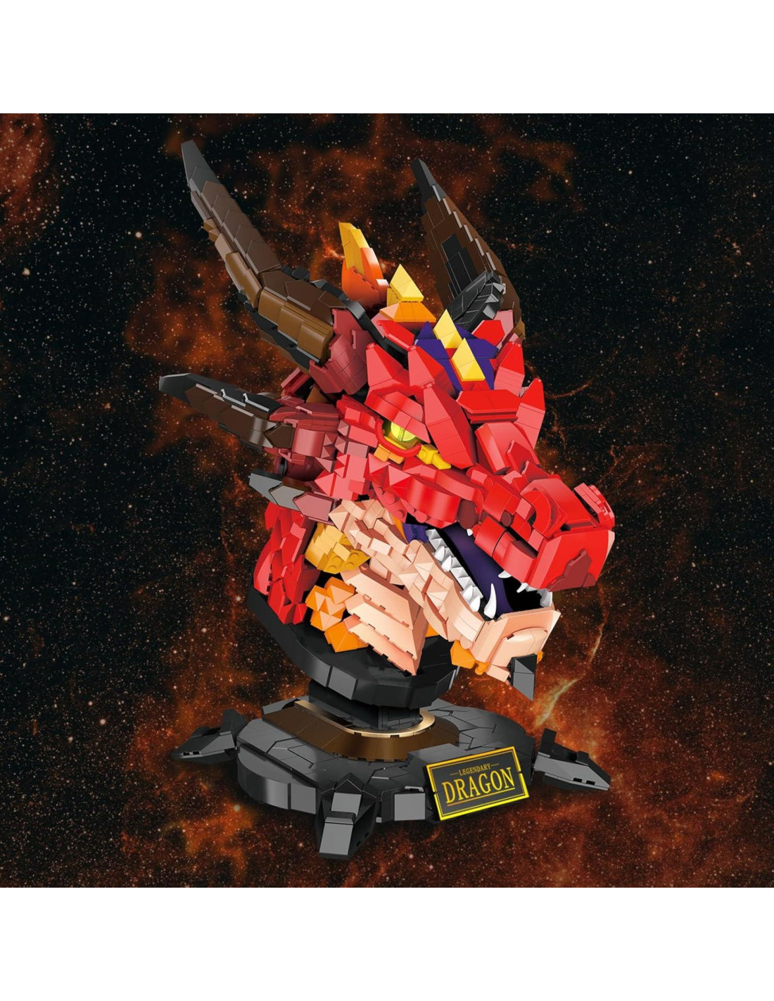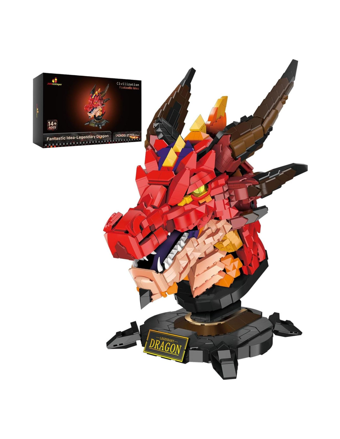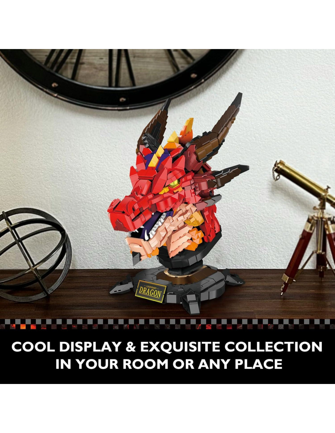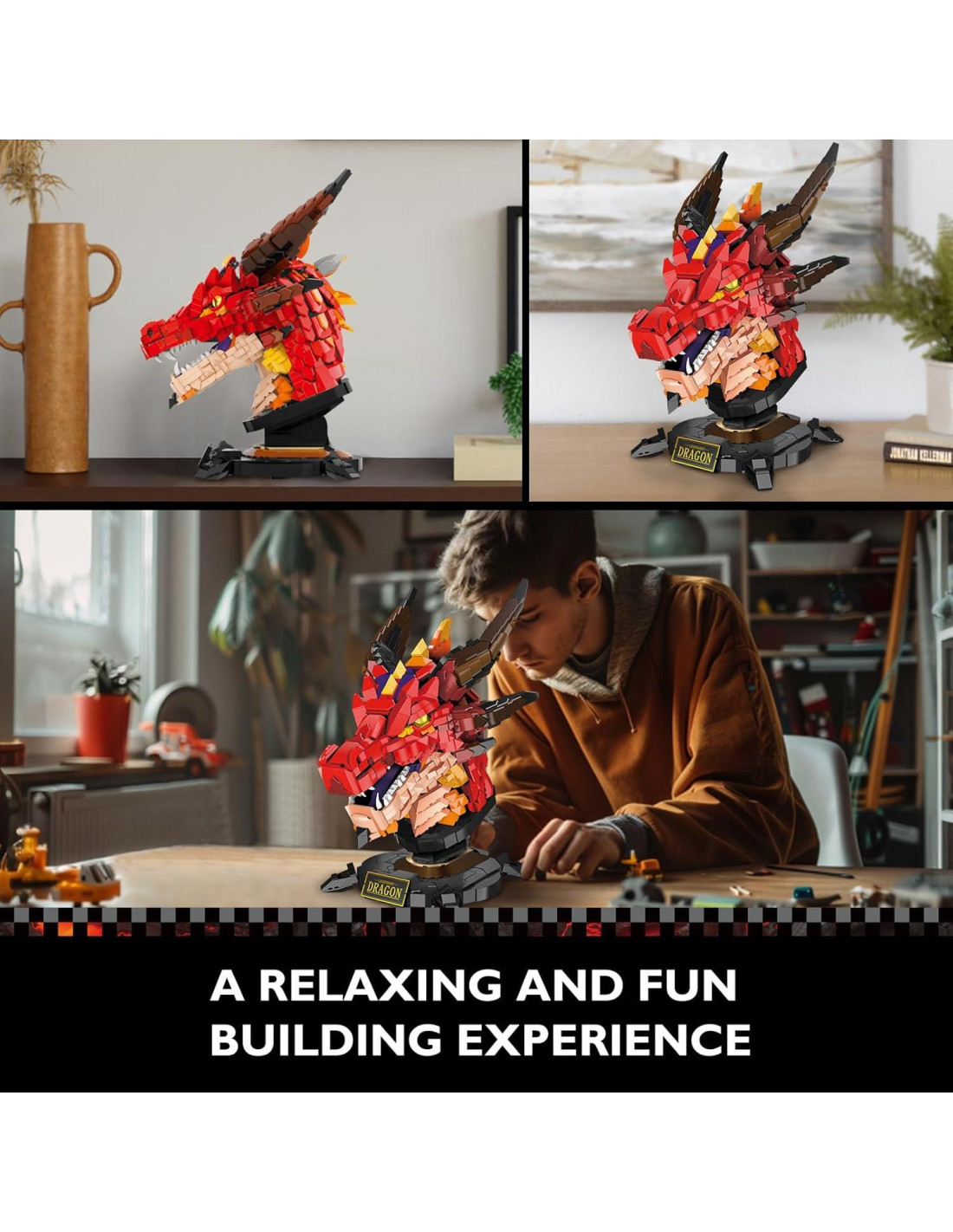 - [Artesanía Exquisita, Decoración Cautivadora y Colección] El esquema de color principal de este modelo de bloque de construcción de cabeza de dragón es rojo, lo que lo convierte en una pieza de arte muy exquisita y popular. Con su diseño y artesanía superbos, será una exhibición genial y llamativa en habitaciones u oficinas. Basado en la larga historia del dragón, también se convierte en un coleccionable altamente valioso. Puedes exhibirlo junto a otros modelos de dinosaurios de la misma serie, creando tu propia área de exhibición de juguetes de construcción única.