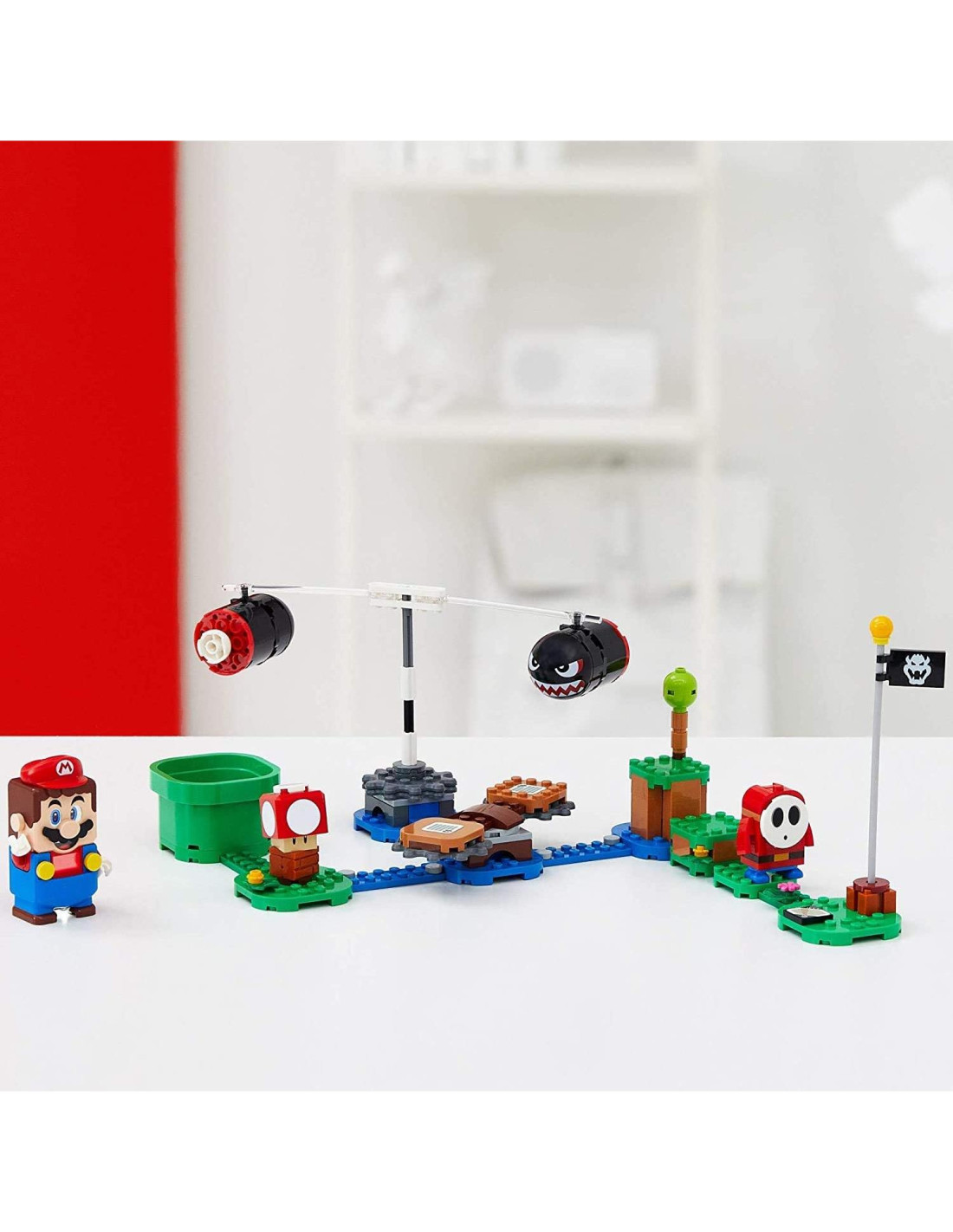 - Este juguete único presenta una plataforma giratoria para LEGO Mario (figura no incluida), un girador con 2 figuras de Boomer Bill 'voladoras', además de una figura de Shy Guy y un Super Mushroom para aumentar la jugabilidad