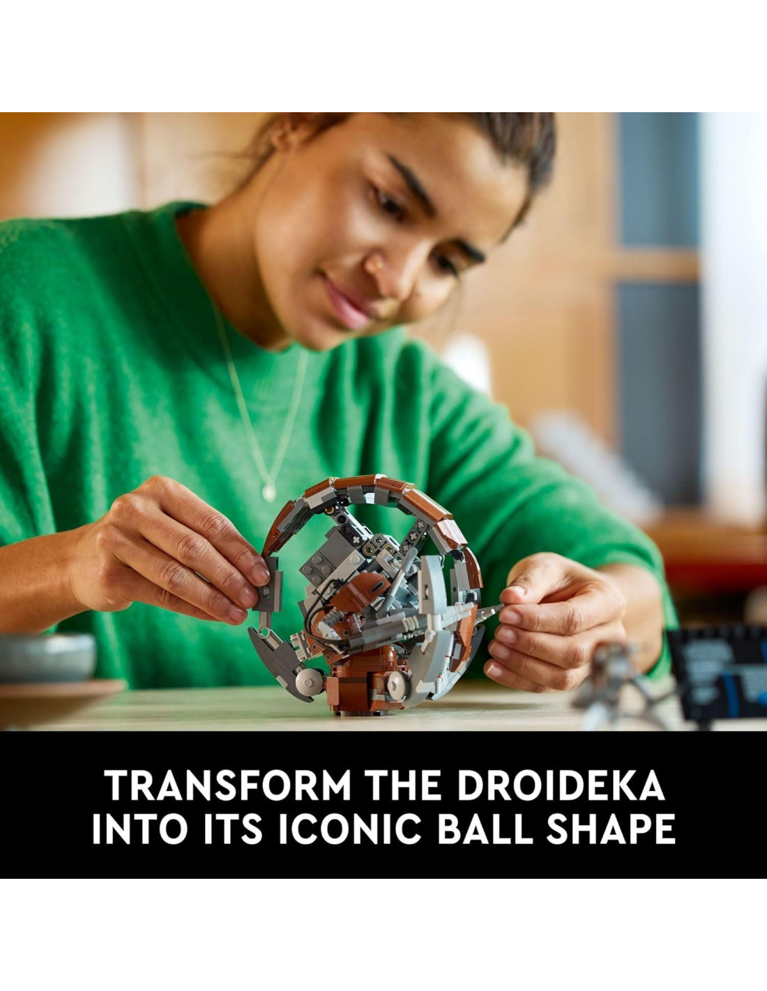 - Set de exhibición de aventura de fantasía de LEGO Star Wars con detalles lúdicos - Mueve los brazos del Droideka hacia adelante y hacia atrás en un movimiento de disparo realista, y vuelve a colocar las piernas para transformarlo en una forma de bola