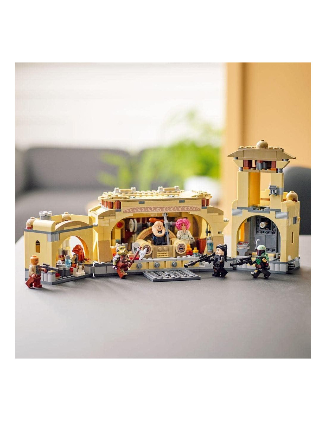 - Incluye siete minifiguras de Boba Fett, Fennec Shard, Bib Fortuna, bailarina Theeliana, guardián, guardia Gamorreano Weequay y Quarren con diferentes armas