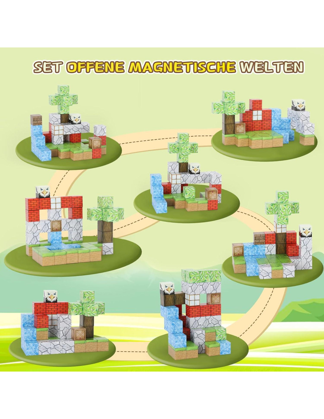 - SATISFACIENDO A LOS NIÑOS DE SER UN REY/REINA: los bloques magnéticos pueden satisfacer la imaginación desbordante de los niños, los ricos patrones y personajes pueden atraer la atención de los niños, los niños se ocuparán más al construir el mundo. Desata la creatividad de niños y niñas mientras ayudas a los padres a deshacerse de las preocupaciones de criar a los niños.