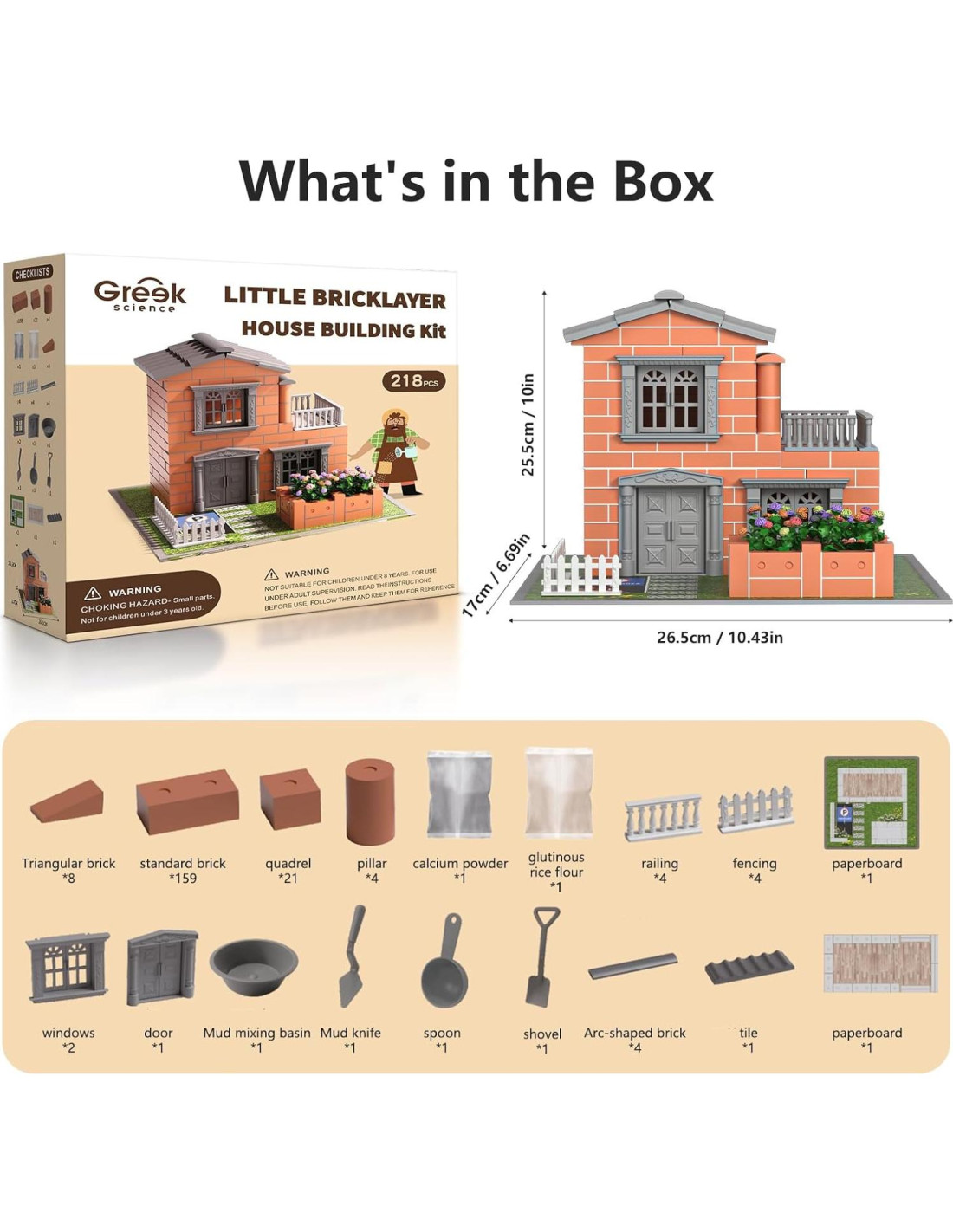 - ¡Mira, construí una casa REAL! - No solo bloques de plástico! Deja que los niños experimenten el orgullo de un arquitecto con ladrillos mini auténticos - su primer kit de herramientas para convertirse en futuros ingenieros