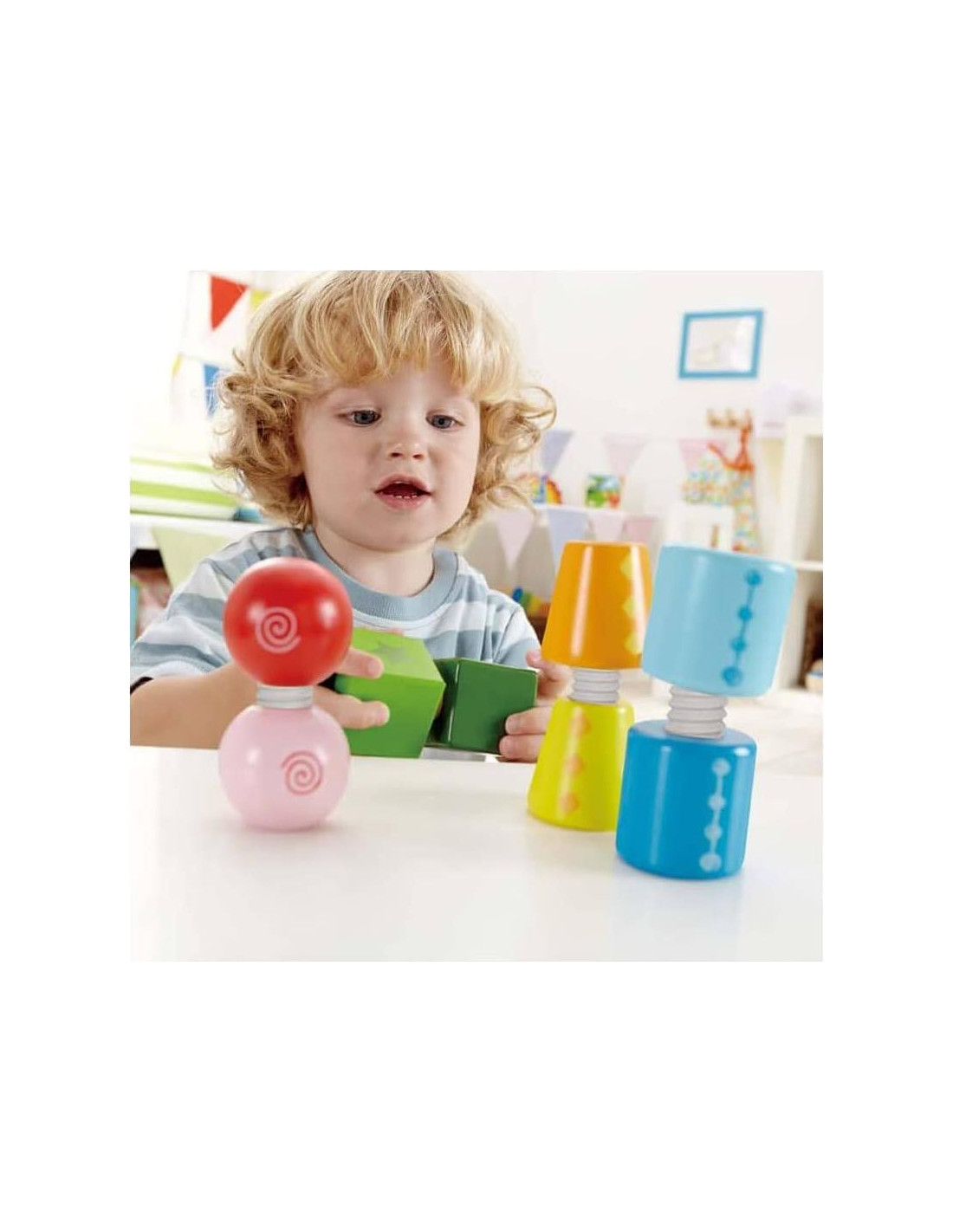 Descripción del Producto Giros y Tornillos son las tuercas y tornillos de la construcción con bloques! Ocho formas atornillables en diferentes colores estimulan una mente activa para girar y convertir nuevas creaciones en existencia. Los Giros y Tornillos de Hape pueden ayudar a construir no solo ideas geniales, sino también habilidades motoras, de coordinación y creatividad. Para edades de 24 meses en adelante. Del Fabricante Los bloques Giros y Tornillos de Hape dan a la construcción un nuevo giro con formas atornillables que no se caerán. Ocho tuercas y tornillos básicos en cuatro colores y formas brillantes, mezcla y combina creando infinitas combinaciones posibles. Desarrolla habilidades motoras y estimula la imaginación. Un acabado de pintura seguro para niños y una construcción de madera sólida son características distintivas de los juguetes Hape. Los juguetes de Hape estimulan a los niños en cada etapa de su desarrollo y ayudan a nutrir y desarrollar sus habilidades naturales. Todos los productos Hape vendidos en América del Norte cumplen o superan todos los estándares de seguridad aplicables.
