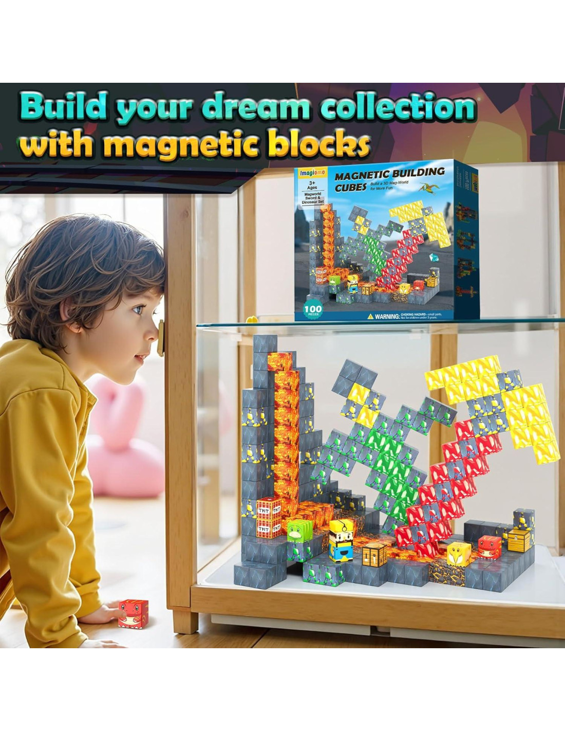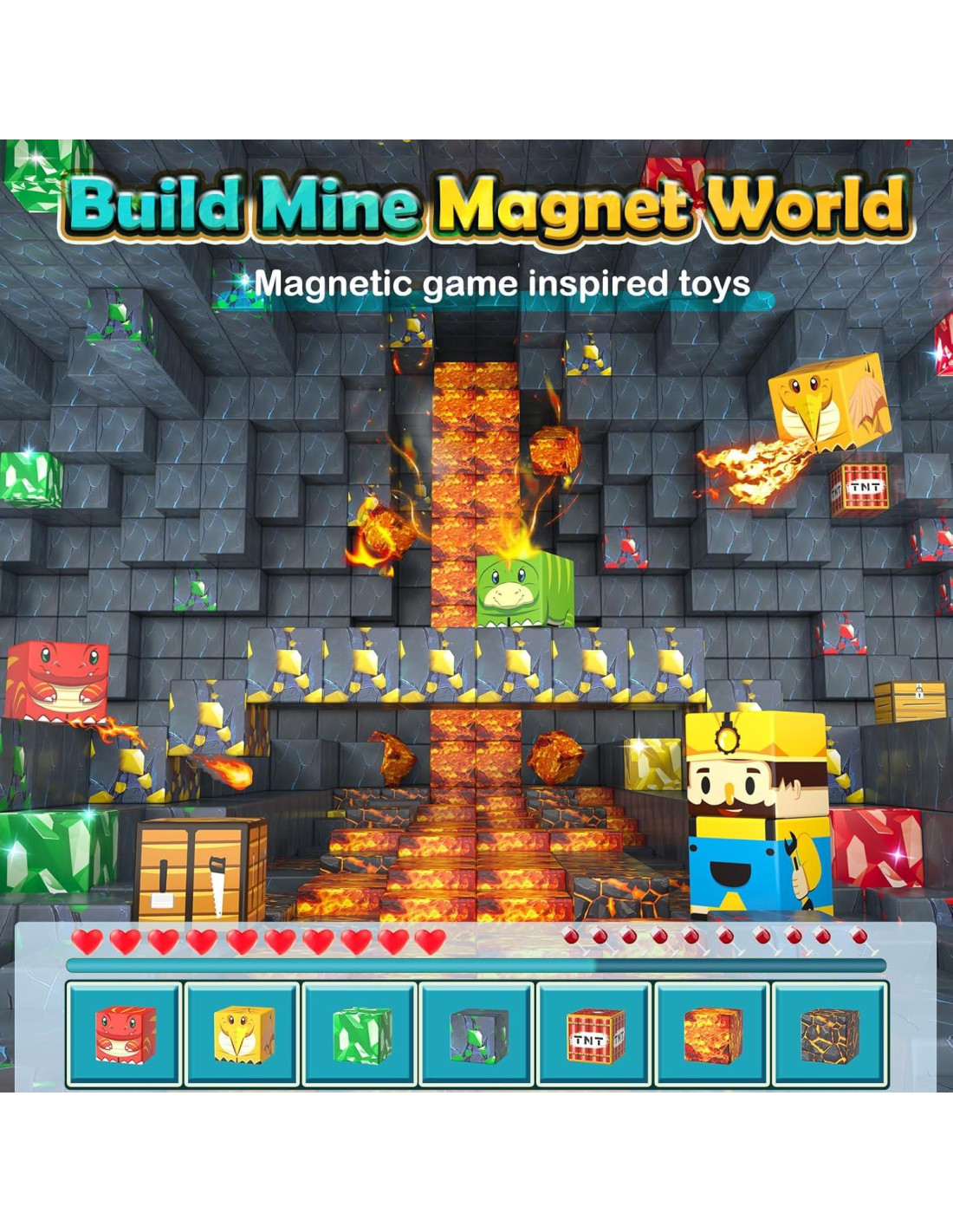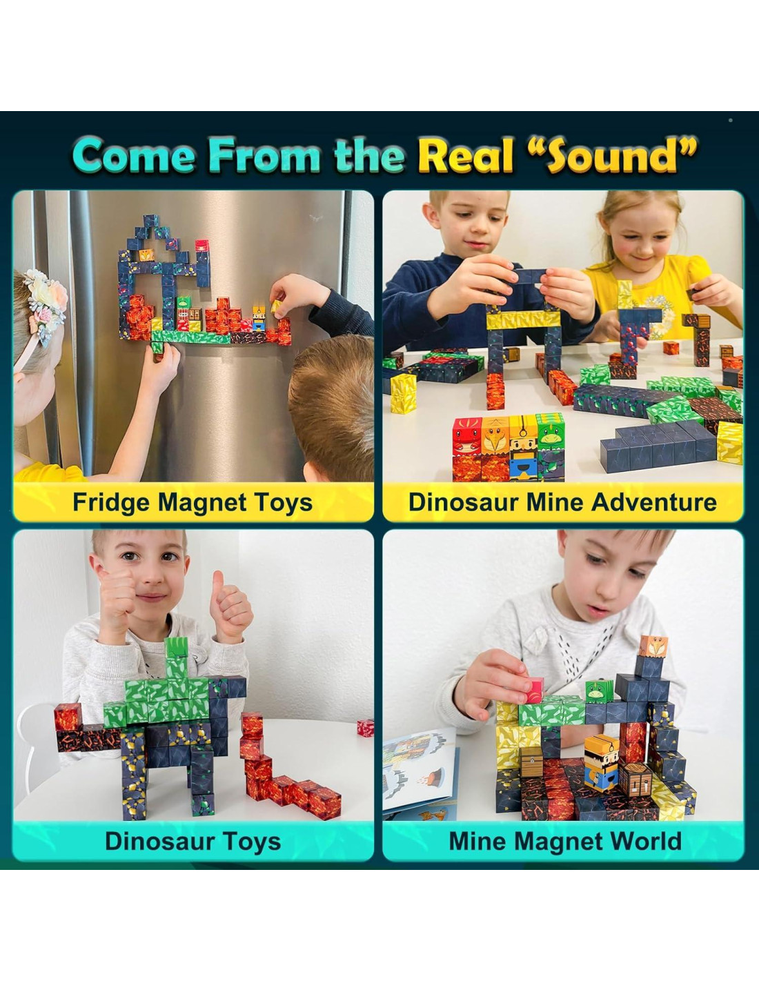 - [Embarca en una Aventura en la Mina de Dinosaurios] Deja que tus hijos exploren un emocionante mundo magnético con nuestros juguetes para niños! Con 100 piezas de bloques magnéticos, los niños pueden construir estructuras infinitas como flujos de lava, puentes, espadas y picos para dar vida al juego magnético. Los niños también pueden establecer niveles de juego con obstáculos como explosivos para descubrir sorpresas como gemas ocultas y herramientas de minería. Perfecto para estimular la creatividad y la imaginación en niños de 3 a 8 años, los juguetes de construcción transforman el tiempo de juego en un emocionante viaje a través de una mina llena de dinosaurios.