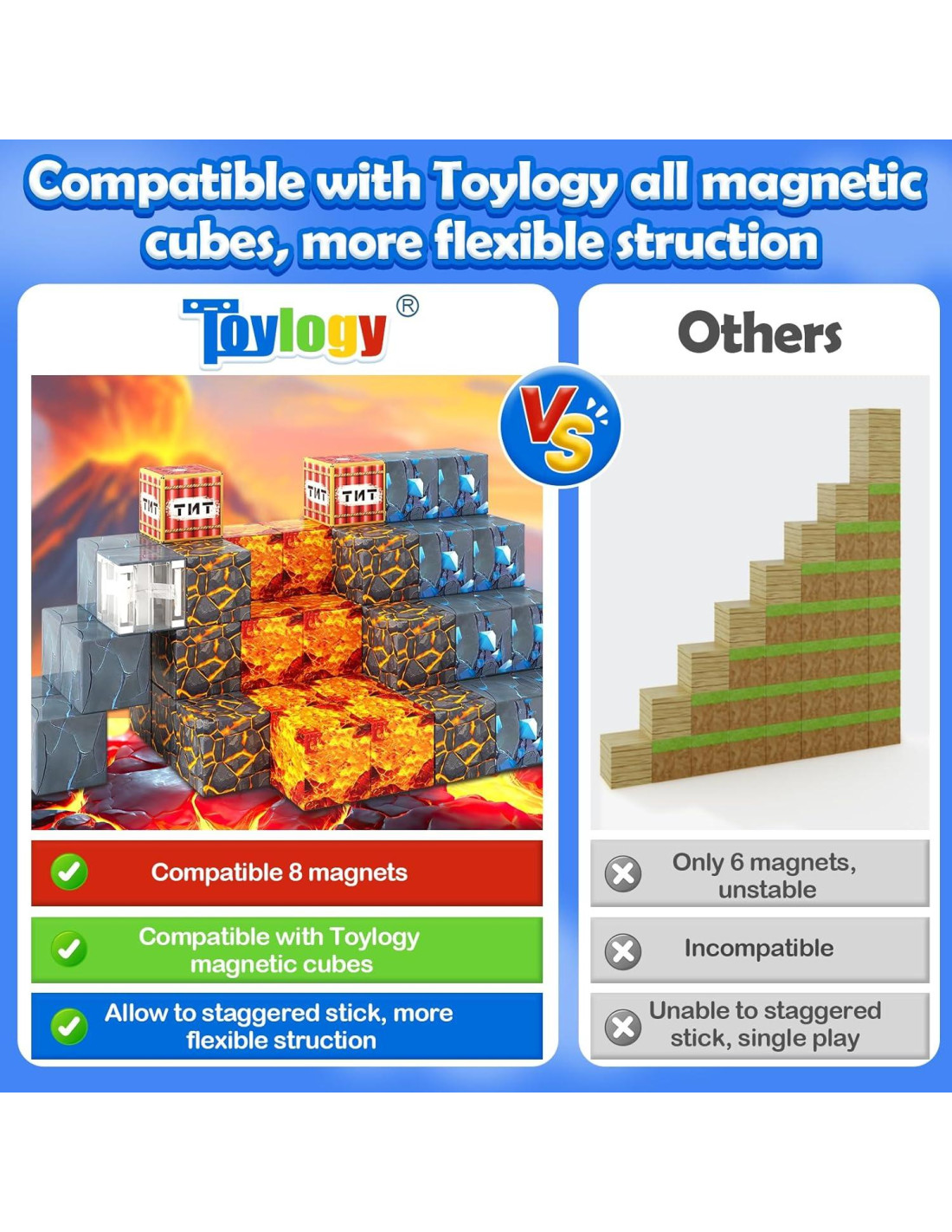 - [JUGUETES DE CONSTRUCCIÓN CON PATRONES ÚNICOS] Los bloques magnéticos Toylogy desbloquean infinitas posibilidades para la imaginación. Incluyendo 168 bloques magnéticos en 24 patrones únicos, son suficientes para construir diferentes escenas de mina, los niños nunca tendrán que preocuparse por la cantidad limitada al construir. Nuestros Bloques de Construcción incluyen un folleto de ideas para inspirar la exploración en su magworld. ¡Disfruta de juegos al aire libre con amigos para promover el pensamiento diverso en la construcción! ¡Deja que la imaginación de los niños vuele con nuestro juego magnético abierto!