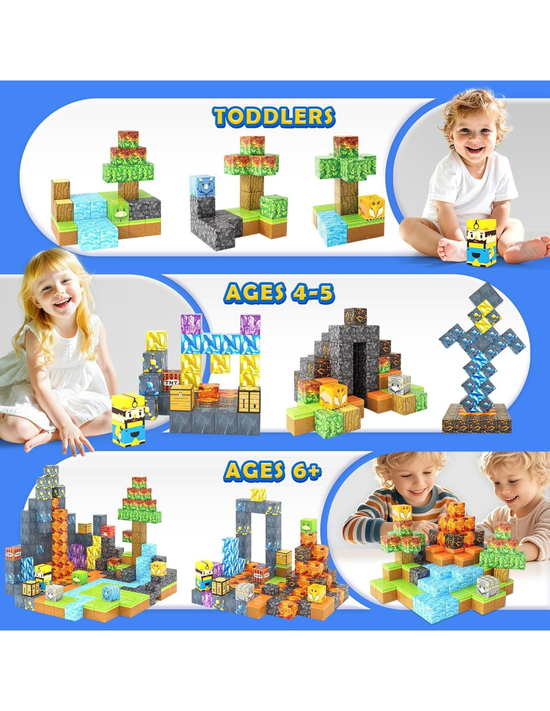 - [DISEÑO SEGURO Y COMPATIBLE] Nuestro conjunto de construcción del mundo magnético de minas es amigable para los niños con bordes redondeados y un tamaño ideal para manos pequeñas. Hechos de materiales no tóxicos y ecológicos, estos bloques magnéticos duraderos aseguran un juego seguro y robusto. Compatibles con marcas populares, lo que te permite expandir tu colección de juguetes magnéticos. Perfectos bloques magnéticos para que los niños de 4 a 8 años jueguen de manera segura y creativa.