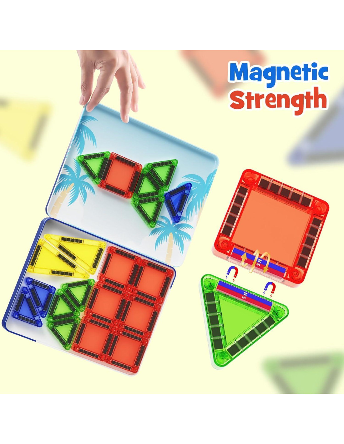 - Set de Construcción Magnético de 26 Piezas: Presenta 4 triángulos rectángulos, 4 triángulos grandes, 6 triángulos equiláteros y 12 cuadriláteros en colores vibrantes. Estas formas magnéticas inspiran creaciones ilimitadas en 2D y 3D, fomentando la creatividad y el pensamiento imaginativo de los niños.