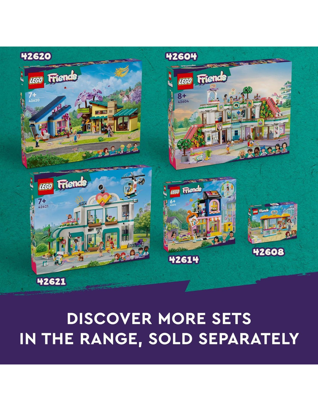 - Sets LEGO Friends - Consulta más kits de construcción para niños en la gama LEGO Friends (se venden por separado), donde los jóvenes constructores pueden descubrir personajes diversos mientras juegan juntos actuando aventuras de la vida real