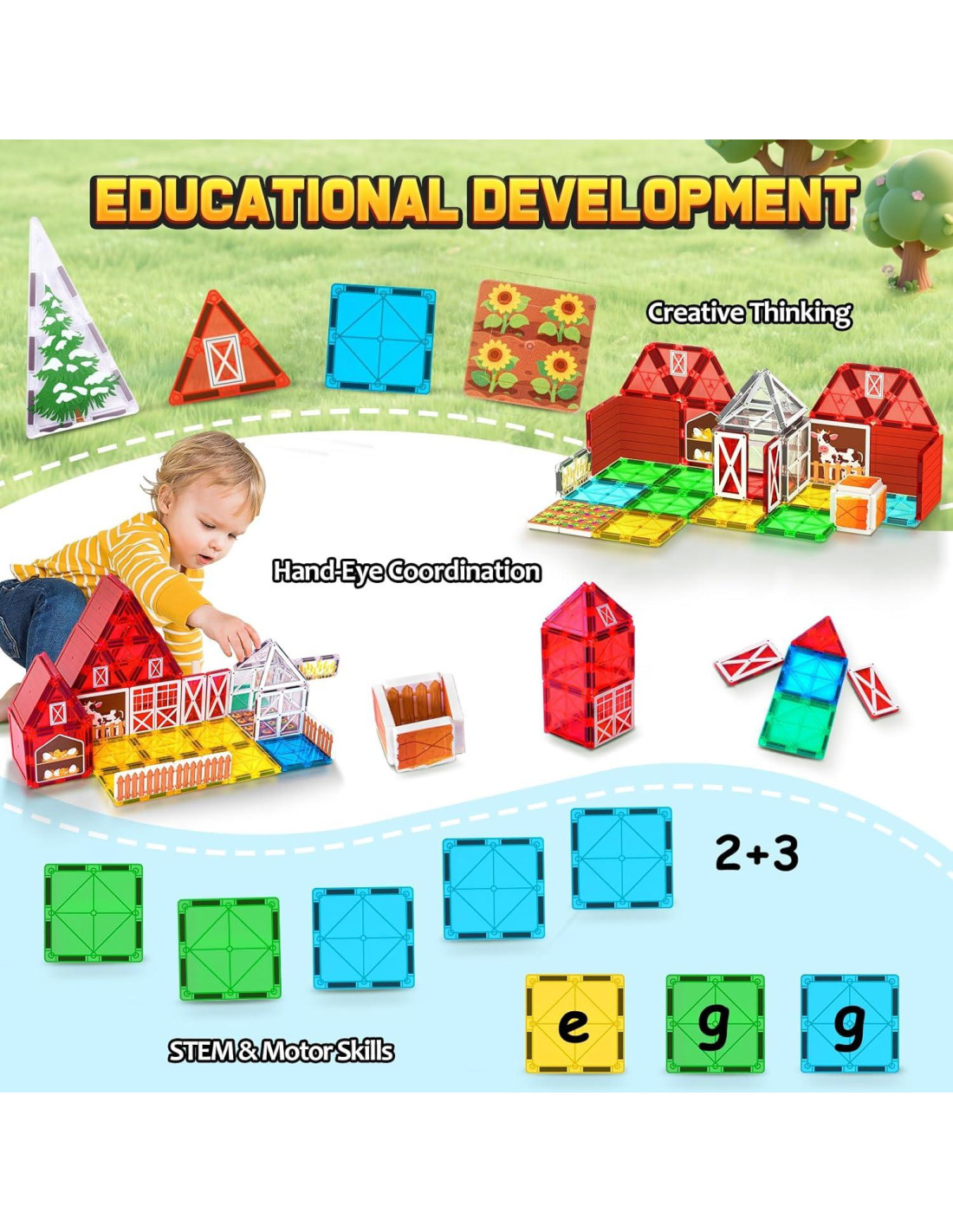 - [Juguetes STEM, Montessori y Sensoriales] Estos azulejos magnéticos para niños de 4 a 8 años están diseñados específicamente para ofrecer una gran experiencia de aprendizaje. Fomenta la exploración práctica a través de la unión de azulejos magnéticos. Mientras construyen, los niños pueden aprender sobre los principios de estabilidad de las estructuras arquitectónicas. Con la creación de diversos escenarios, como simular las estaciones de la granja, entrena de manera integral las habilidades motoras finas, el razonamiento lógico y la expresión del lenguaje. Además, despierta el interés de los niños en la exploración científica y el pensamiento innovador, convirtiéndolo en una excelente herramienta para la educación STEM.