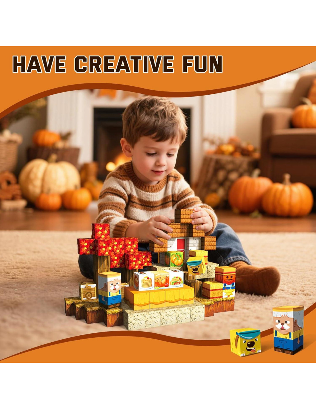 - Construye y Muestra Escenas Inspiradas en el Otoño: Los niños pueden apilar estos azulejos en mesas, pegarlos a neveras o pizarras, y dar vida a creaciones con temática de cosecha. Compatibles y expandibles, estos bloques convierten cualquier superficie en un lienzo para una imaginación audaz y un juego sin fin