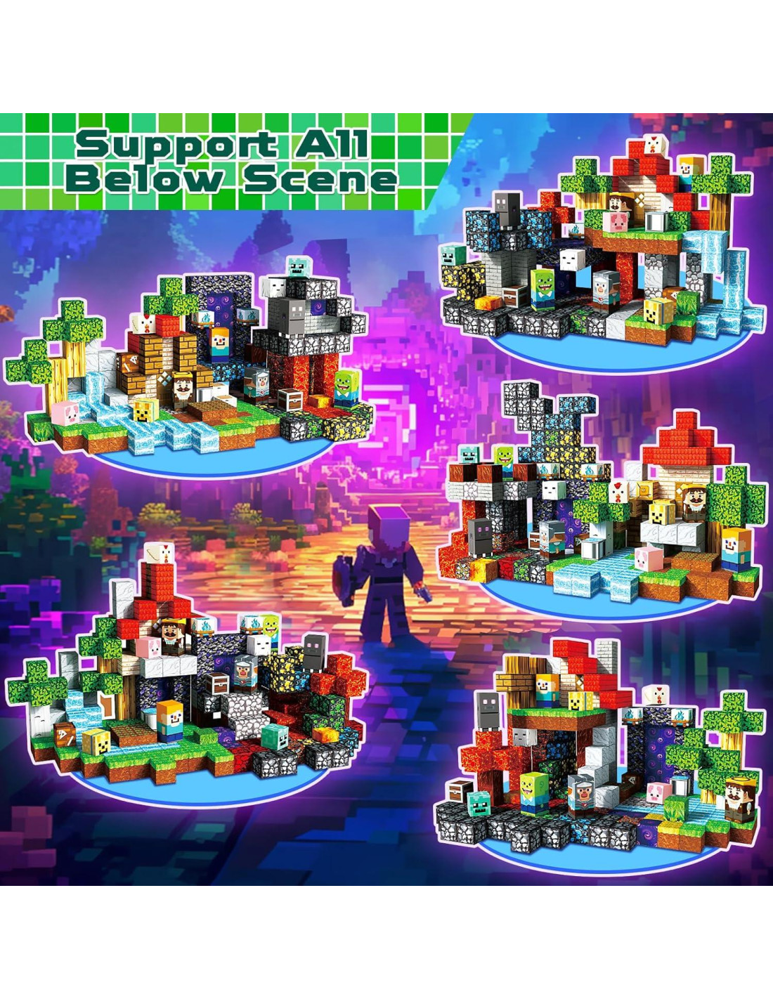 - [Abundancia de Elementos de Juego] ¡Embarquémonos en una aventura con bloques de construcción magnéticos! Despierta la imaginación de los niños con temas de lava, portal y bosque. Estos bloques magnéticos fomentan el juego abierto, permitiendo a los niños construir, demoler y reconstruir a su antojo. Seguros, duraderos y diseñados para manos pequeñas, nuestros cubos magnéticos hacen que aprender sea divertido, mejorando la concentración, la paciencia y las habilidades motoras, ¡ideales para niños de 3 años en adelante!
