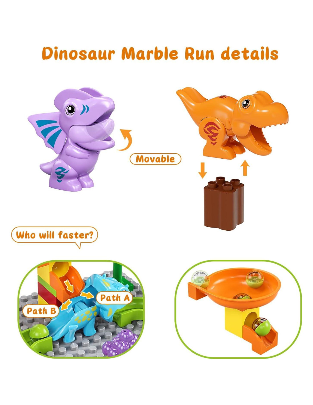 - Juguetes de Rompecabezas de Dinosaurios para Niños: Este juguete de construcción fácil de armar para preescolares incluye una amplia selección de elementos de dinosaurios, hay T-rex, Dilophosaurus, Triceratops y Tanystropheus. Con 4 pelotas y una variedad de bloques de construcción grandes y coloridos, los niños pueden construir una pista de carreras de canicas, un conjunto de construcción de dinosaurios y cualquier cosa que les guste. Las instrucciones de construcción paso a paso facilitan el inicio.