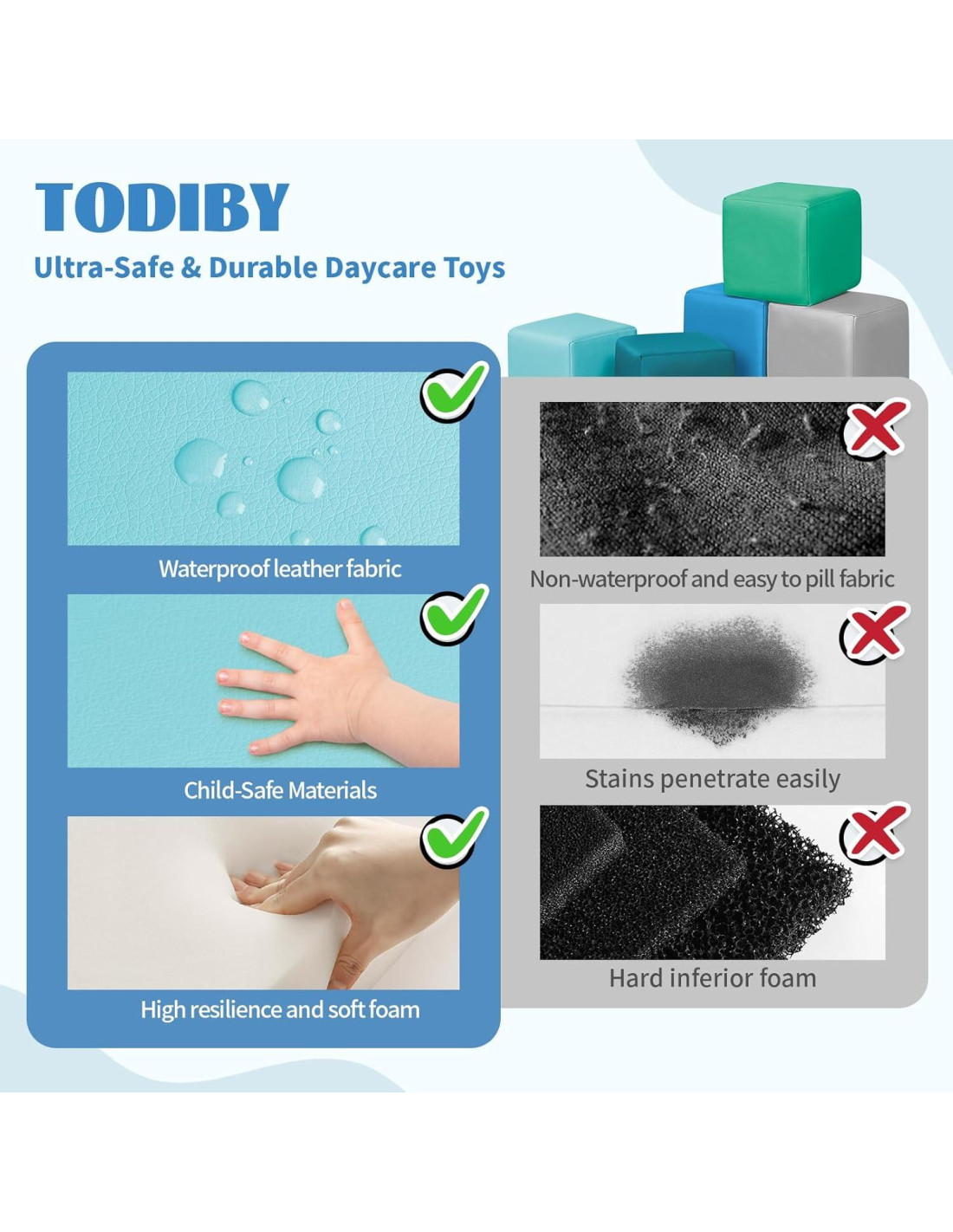 - Juguetes de Guardería Ultra-Seguros y Duraderos: Diseñados para pequeños constructores activos. Hechos con espuma no tóxica y segura para niños pequeños y cuero PU resistente a desgarros, estos bloques apilables son suaves para rodar y resistentes para el juego diario. Una opción higiénica confiable para juguetes diarios y preescolares.