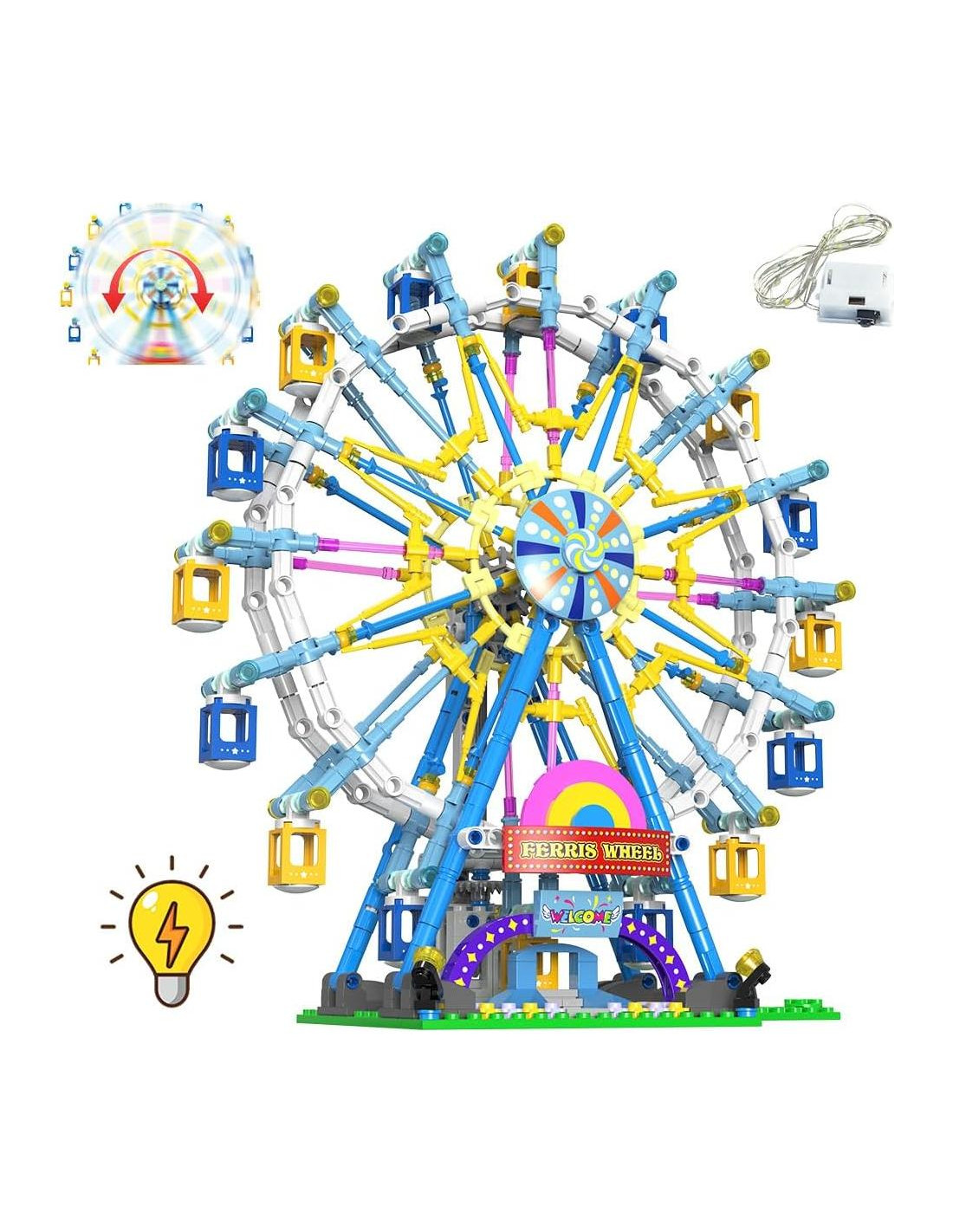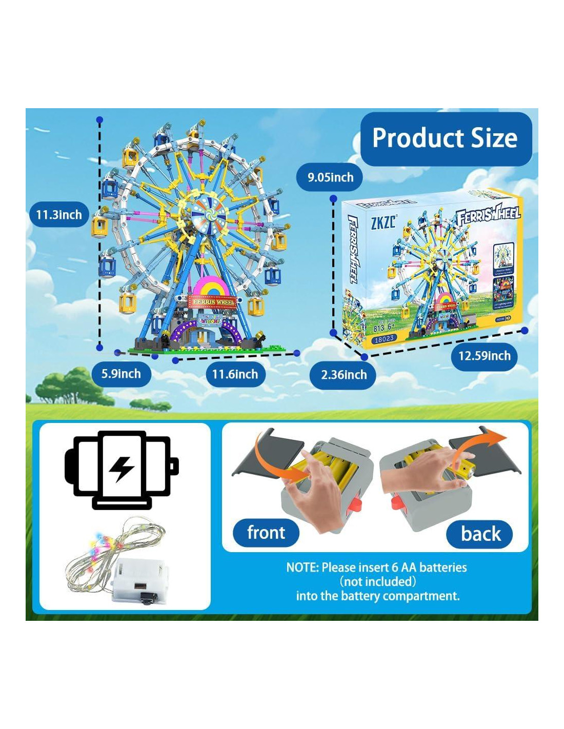 - Ejercicio de Habilidades STEM - Este set de juguetes de construcción es desafiante y ejercita la concentración y paciencia de los niños, mejora su imaginación y habilidades prácticas, y les brinda una gran sensación de logro después de completarlo. La rueda de la fortuna rotativa y las luces estimulan la curiosidad de los niños para explorar más imaginación.