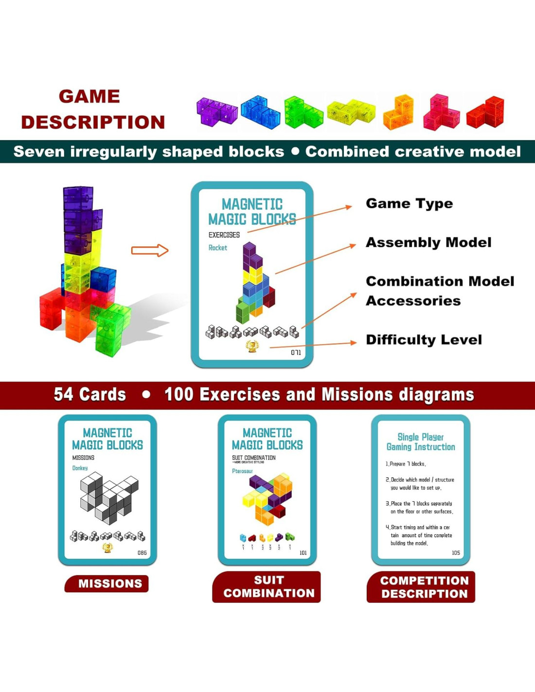 - [Cubos mágicos 3D] Puzzles geométricos 3D de cristal y 54 tableros de guía se pueden ensamblar en 108 formas diferentes. También puedes usar tu creatividad para unir cualquier forma en una forma divertida.