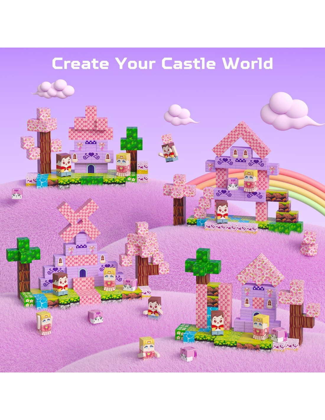 - Juego Temático de Castillo: Incluye 100 cubos magnéticos en 22 colores con lados de 5 cm. Los bloques de construcción te permiten crear fácilmente el castillo de tus sueños. Los potentes imanes te permiten construir, reconstruir e imaginar todo tipo de paisajes de castillo. Los diseños de cubos temáticos de princesas y coloridos dan a los bloques de construcción un atractivo único, permitiendo a los niños desatar su creatividad ilimitada.