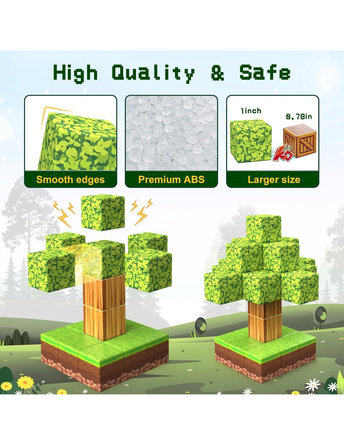 - [Juego de temática forestal] Experimenta la diversión de los juguetes magnéticos con este juego de caja magnética de 1 pulgada. Construye un castillo en el bosque con 8 tipos diferentes de bloques magnéticos y comienza tu aventura en el bosque con diversión de juego de roles y juguetes de actuación, desde construcciones simples hasta desafiantes. Deja que la imaginación de los niños vuele en nuestros juegos magnéticos abiertos.