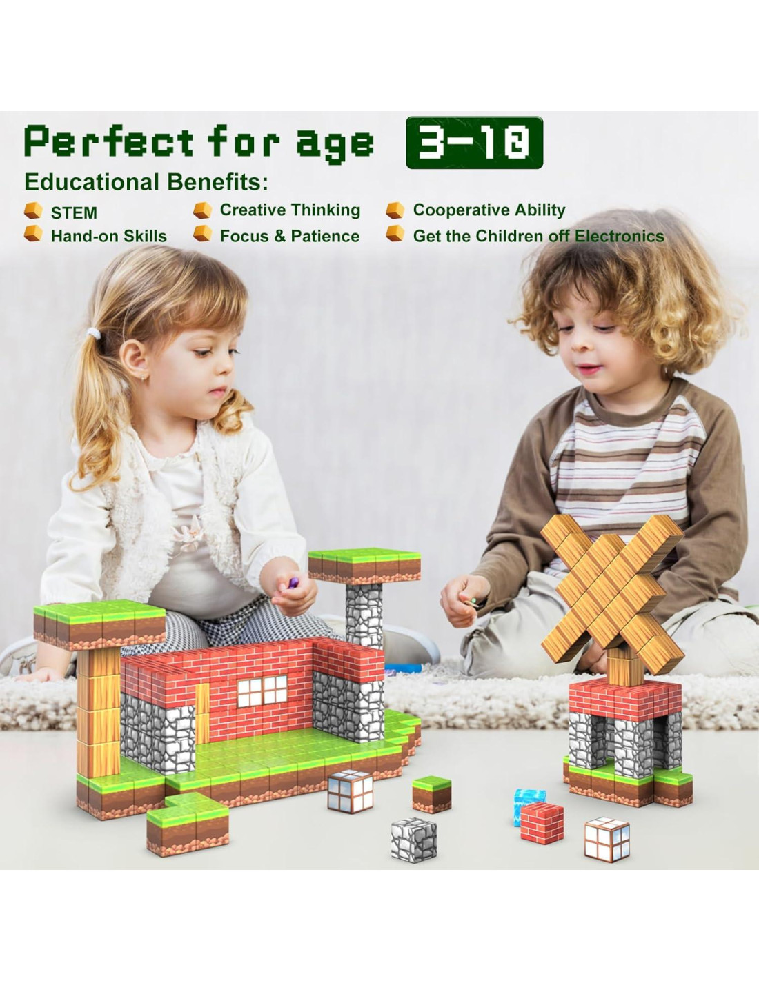 - [Interactivo y entretenido] : Los bloques de construcción magnéticos tienen diferentes patrones. Estos bloques magnéticos permiten a los niños construir estructuras y escenas con estos juguetes magnéticos. Cada cubo se puede conectar fácilmente para permitir apilamientos ilimitados y variaciones estructurales.