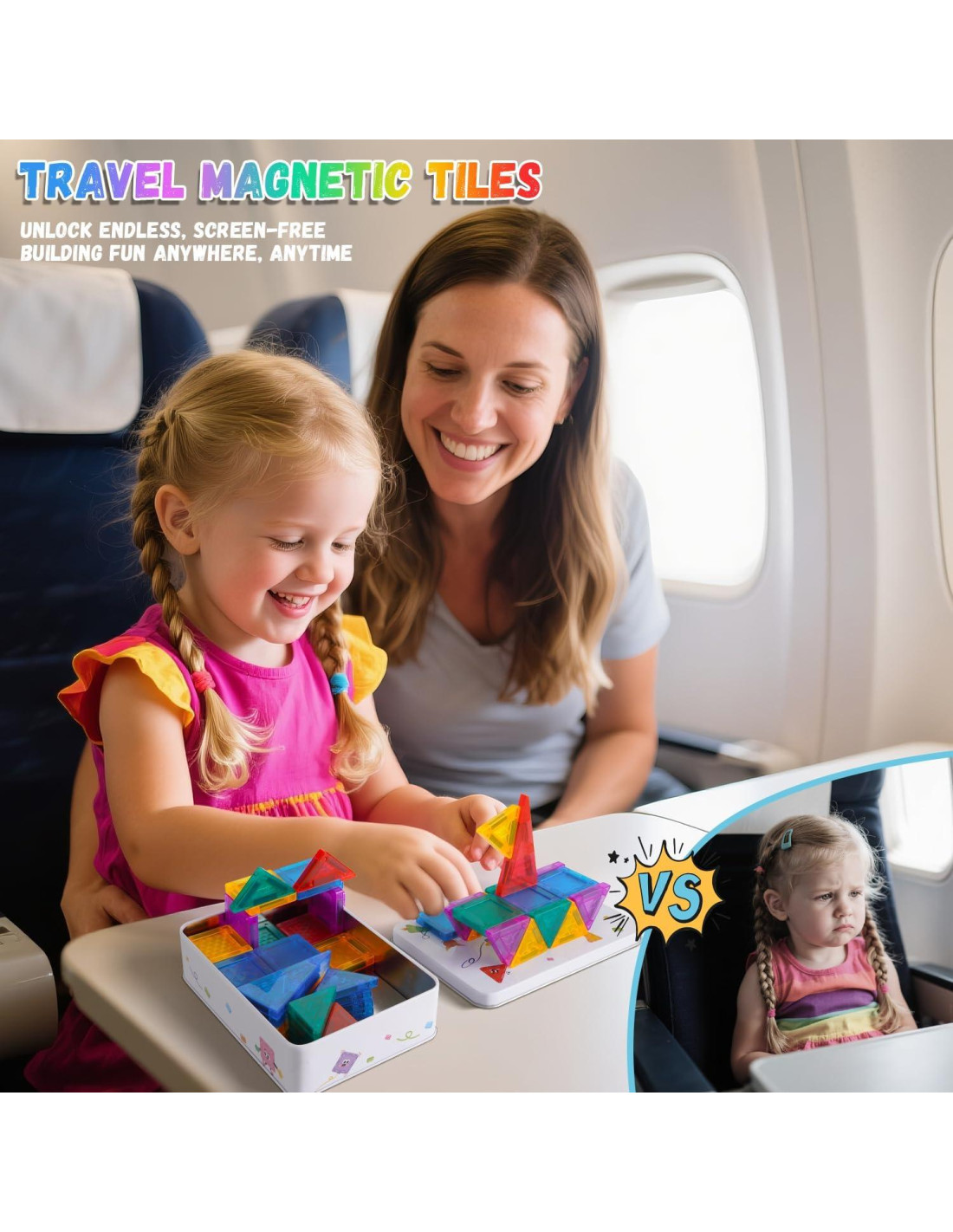 - Azulejos Mini, Lleva la Diversión a Cualquier Lugar: Nuestro set de azulejos magnéticos de tamaño de viaje de 56 piezas es un 75% más pequeño que los azulejos estándar, pero totalmente compatible. Desbloquea diversión de construcción sin pantallas en cualquier lugar, en cualquier momento, ya sea en aviones, viajes en coche, viajes en tren, o en parques y hoteles