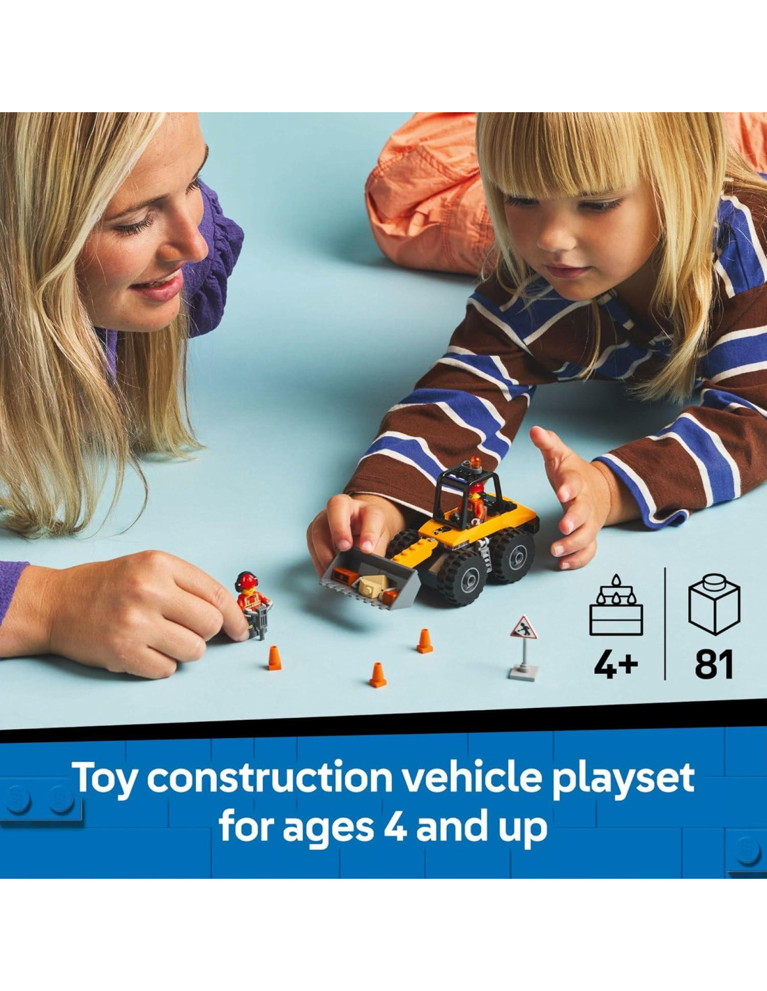 Los pequeños constructores adorarán el juguete LEGO Ciudad Cargadora Amarilla de Construcción (60450) para niños de 4 años en adelante. El set presenta vehículos de construcción, como el juguete excavadora que cuenta con un gran cubo cargador y grandes llantas para navegar terrenos difíciles. Accesorios realistas dan vida al set, incluyendo un letrero de trabajo en la carretera, conos de tráfico y un martillo neumático de juguete, junto con minifiguras de conductor y trabajador para horas de narración imaginativa. Este juguete de construcción fácil de armar incluye un elemento de ladrillo inicial de LEGO y una guía pictórica para seguir las instrucciones. Los niños también pueden usar instrucciones en 3D que se encuentran en la aplicación LEGO Builder, que cuenta con herramientas de zoom y rotación que ayudan a los niños a visualizar los modelos desde todos los ángulos mientras construyen. Los sets de LEGO Ciudad vienen con vehículos de juguete, estructuras realistas y personajes divertidos que inspiran creatividad. Los niños pueden agregar este vehículo de construcción LEGO a otros sets (se venden por separado) de la gama LEGO Ciudad para expandir las posibilidades de juego. Contiene 81 piezas.