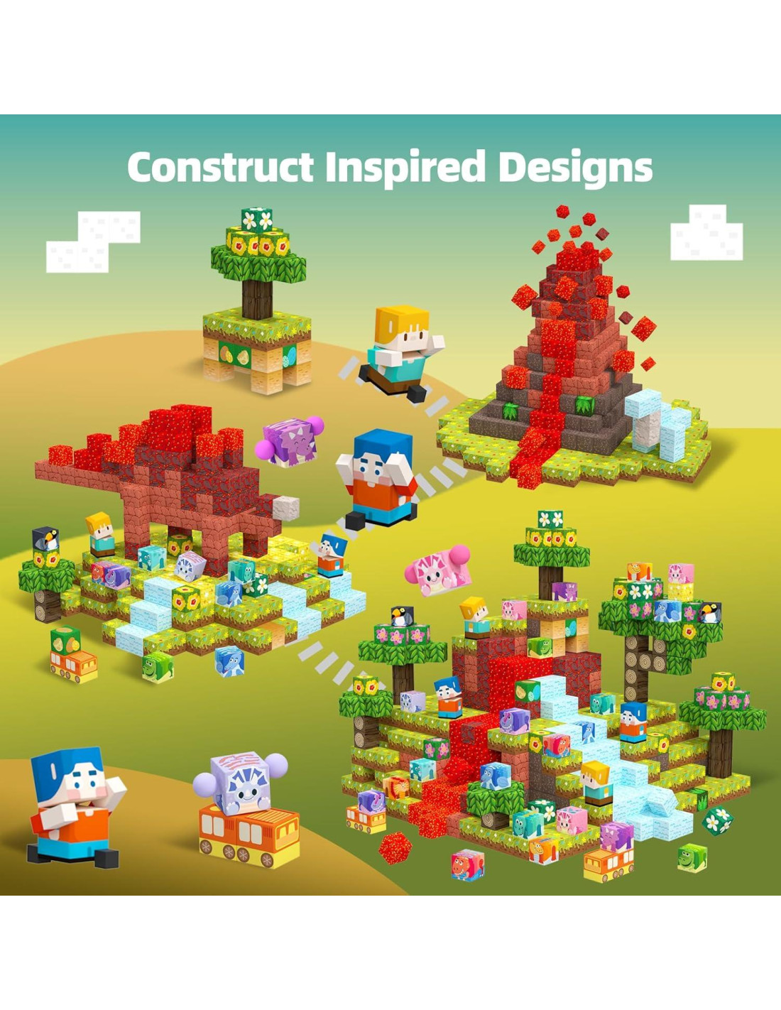 - Experiencia Emocionante de Dinosaurio Volcán: El set de cubos magnéticos temáticos de dinosaurios de 100 piezas de GobiDex cuenta con 38 patrones diversos, incluyendo dinosaurios, cascada de llamas, animales, plantas, enseñando ciencia básica y mundos naturales de manera divertida, despierta la creatividad en los niños