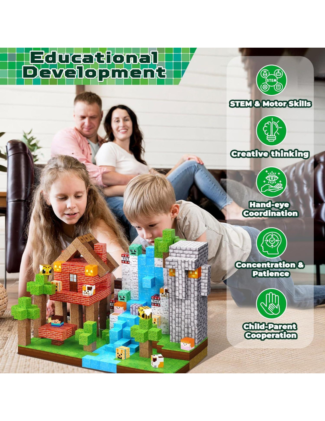- Juguetes de Educación Sensorial para Niños Pequeños. Los bloques de construcción magnéticos ofrecen una excelente manera para que los niños aprendan, jueguen y expandan su autoconfianza mientras comprenden mejor la construcción. Los bloques también suenan como pequeñas campanas mientras juegan con ellos, lo que atraerá la atención de los niños pequeños y los deleitará. Los juguetes de construcción y bloques desbloquean muchas habilidades para los niños. Con estos azulejos magnéticos para construir, girar, destruir y reconstruir, ayuda a promover el pensamiento creativo, la concentración y la paciencia, las habilidades motoras de coordinación mano-ojo, las habilidades cooperativas y las habilidades espaciales y motoras de los niños.
