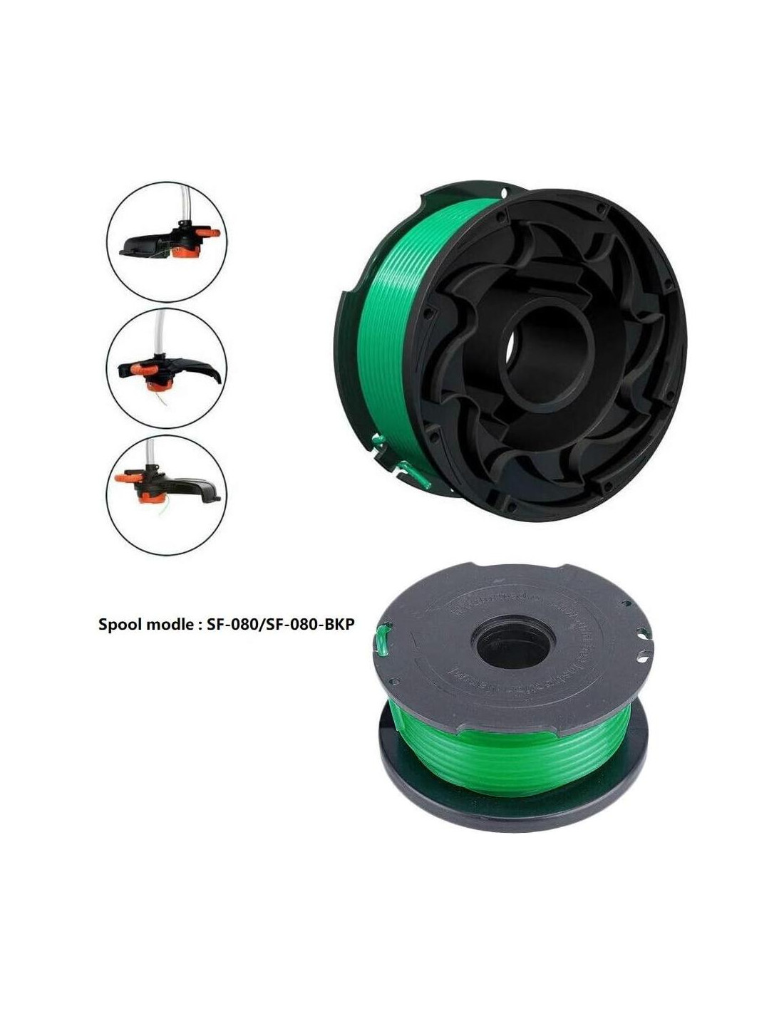 - -Especificación de Bobinas de Desmalezadora GH3000: Bobina de repuesto SF-080 compatible con desmalezadora Black & Decker GH3000 LST540 LST540B GH3000R. Bobina de repuesto premium de 20 pies 0.080 pulgadas para modelos de bobinas originales Black y Decker SF-080 / SF-080-BKP, también conocida como SF 080 / SF-080 AFS / SF 080 BKP.