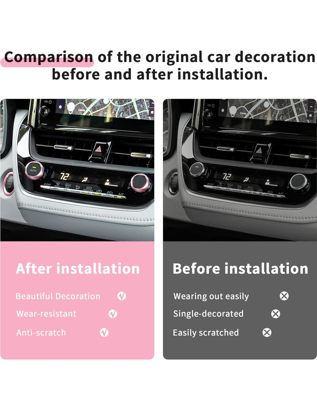 - [Mejora de Lujo y Protección] - Añade acentos metálicos premium mientras oculta rasguños. Protege las perillas de daños futuros para mantener una apariencia nueva.