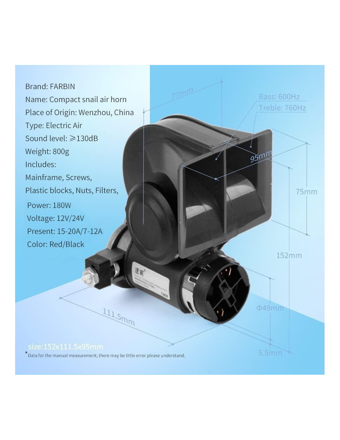 - Alta Calidad: La bocina de aire está hecha de material de alta calidad, lo que garantiza durabilidad y vida útil y puede funcionar en entornos de temperatura de -30C a +80C.