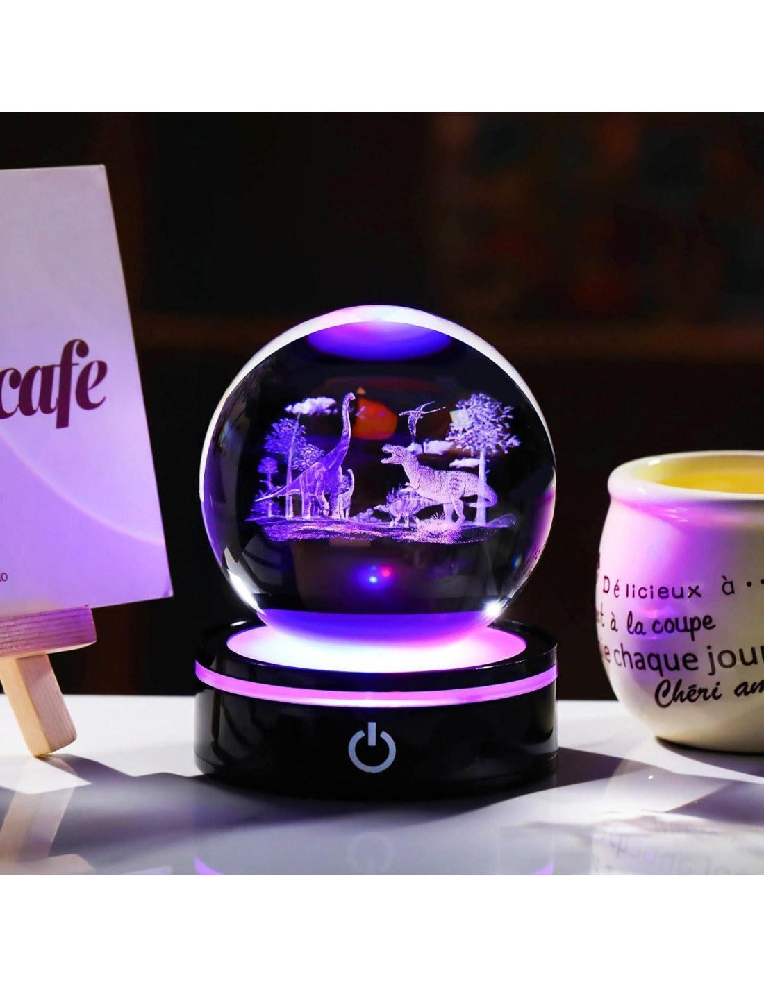 - Base de Luz Colorida: La luz de la base LED puede cambiar de color automáticamente o fijar el color, hay seis modos de iluminación, que pueden iluminar el cristal de varios colores y hacer que el patrón del dinosaurio sea más claro, en un entorno oscuro, se puede usar como luz nocturna.
