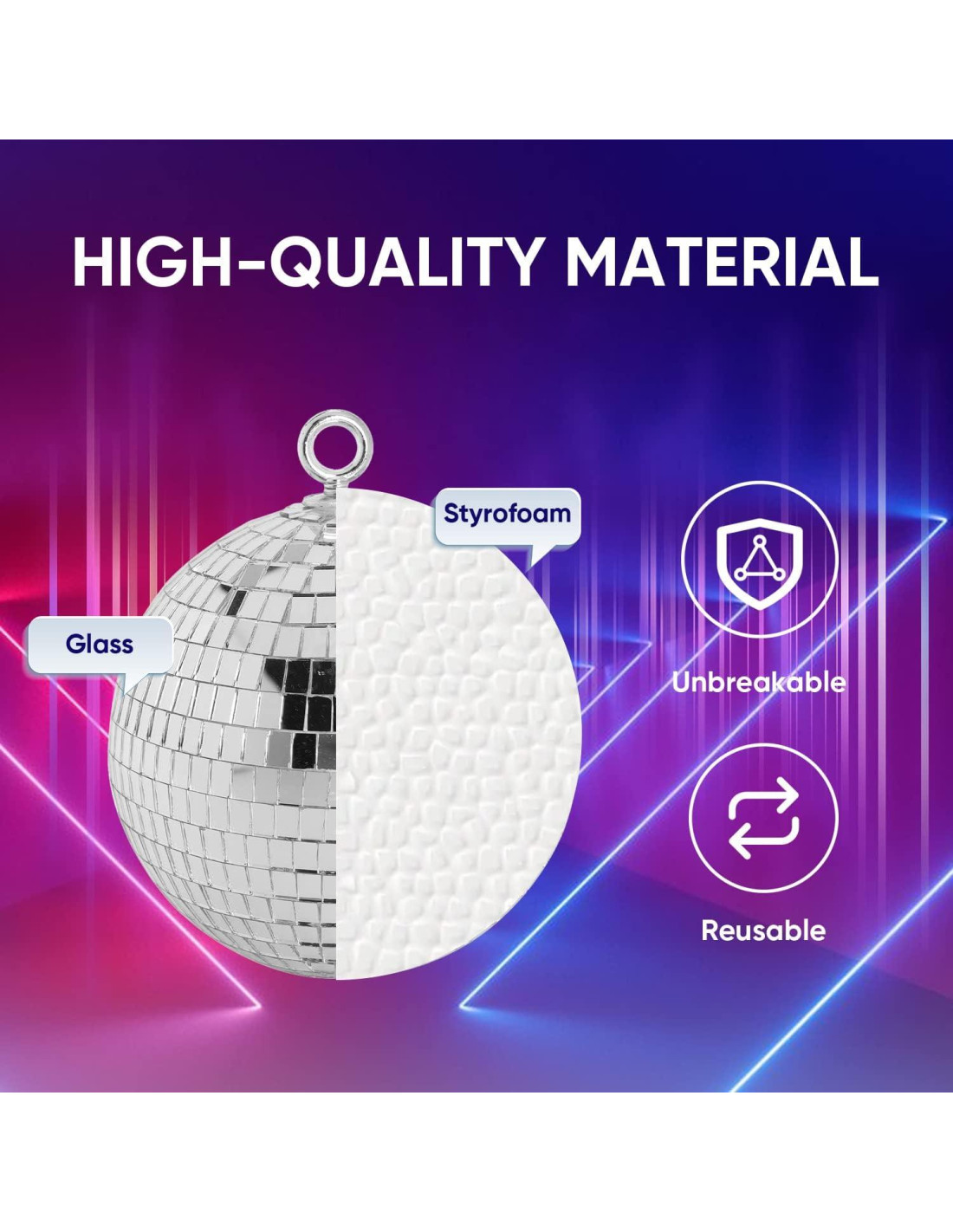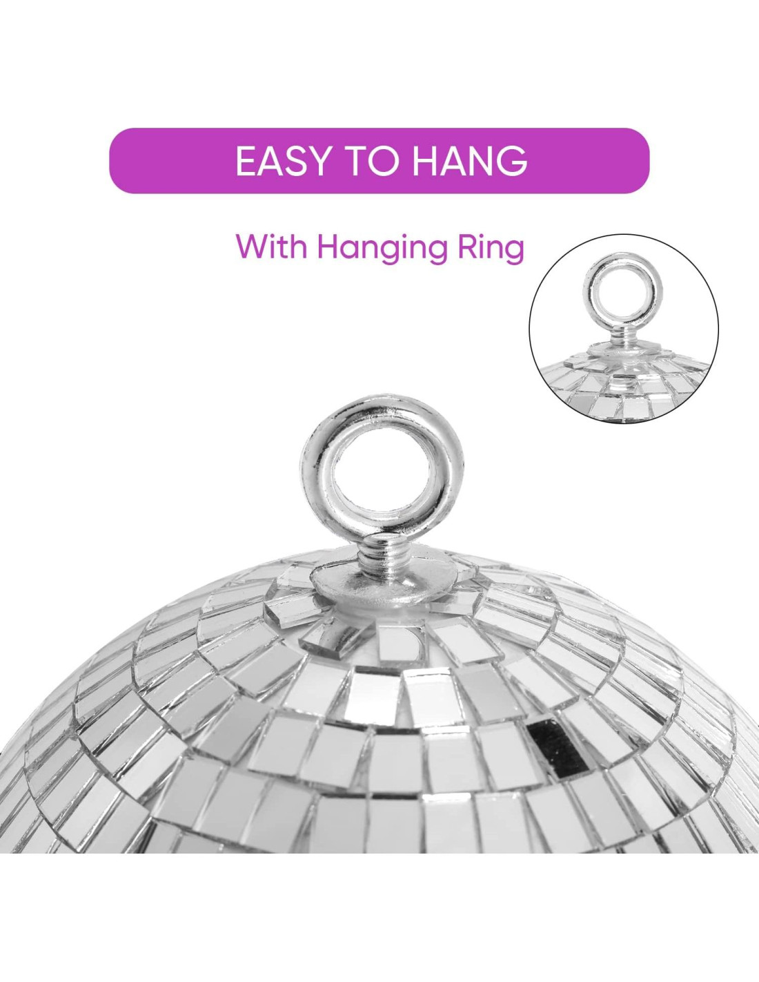- Bola de Disco de Fácil Suspensión: las bolas de disco para fiestas tienen un anillo O preinstalado para una decoración colgante fácil y segura, por lo que puedes simplemente colgarla en el techo, pared, puerta o árbol de Navidad y proporcionará un espléndido efecto de luz