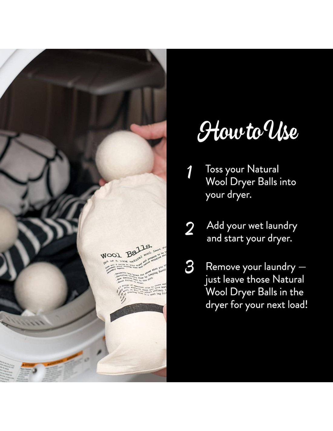 - QUÉ INCLUYE: Recibirás seis (6) bolas de secado de lana 100% de oveja en una bolsa de muselina impresa para almacenamiento. Cada bola de lana dura aproximadamente 1,000 cargas. Para tu hogar promedio, ¡esto son 3 años! Debido a que estas bolas de secado de lana se fabrican sin tintes tóxicos ni blanqueo con cloro, puedes ver alguna variación natural en el color.