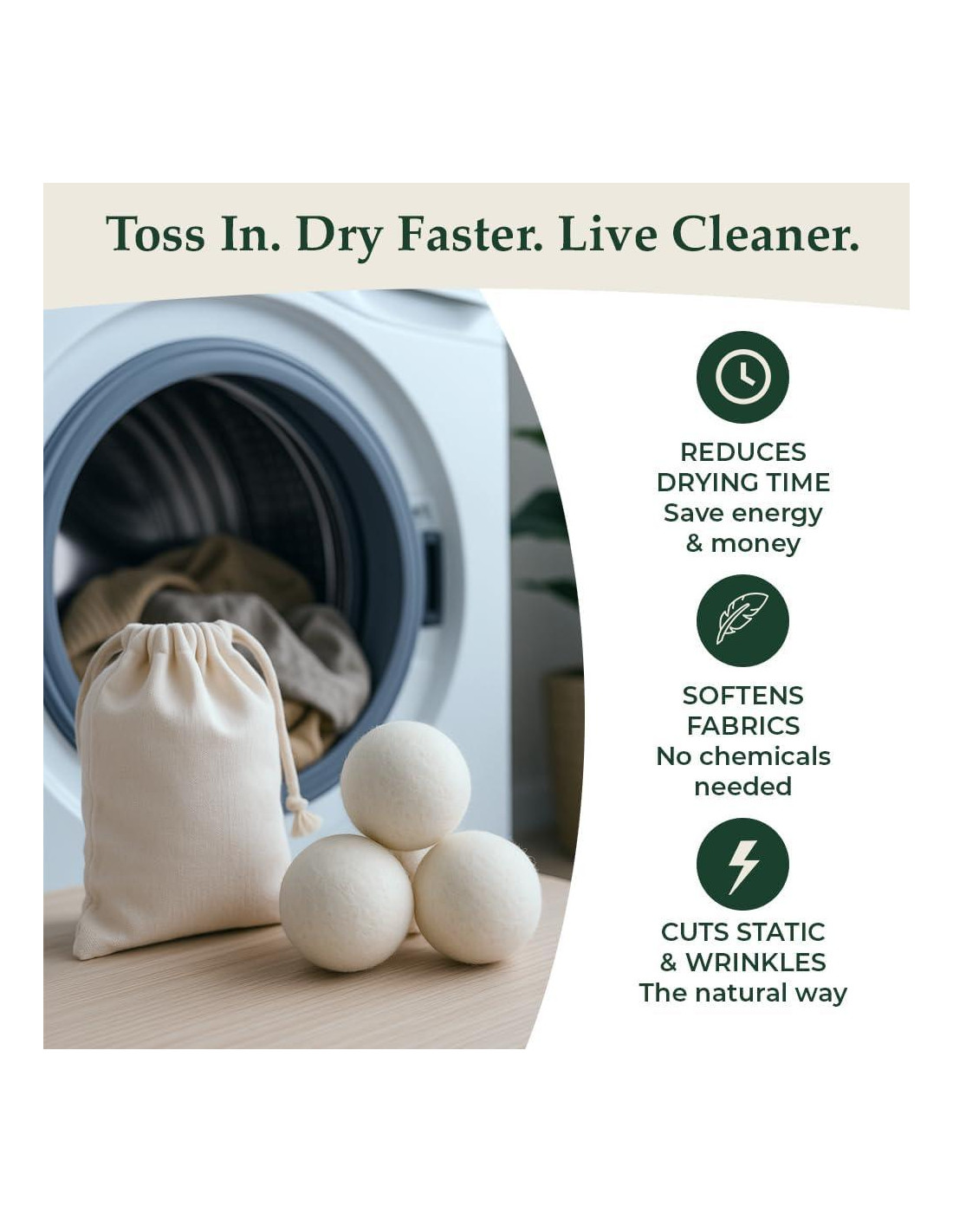 - SUAVIZANTE DE TELAS NATURAL - Deshazte de los químicos agresivos y las hojas de secado de un solo uso. Estas maravillas de lana suavizan naturalmente la ropa sin tonterías sintéticas.