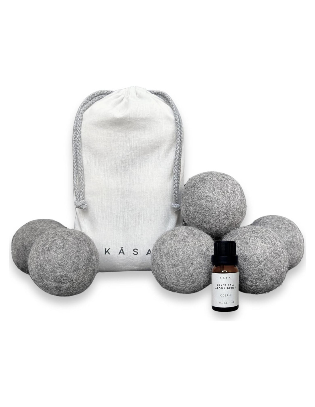 Experimenta una calidad superior con las bolas de secado de lana 100% de Nueva Zelanda de KSA, elaboradas sin rellenos sintéticos. Extra grandes y enrolladas de manera compacta para una solución natural y duradera que reemplaza las hojas de secado y suavizantes de tela cargados de químicos. Acelera el tiempo de secado hasta en un 25% mientras las bolas de secado levantan y separan tu ropa, permitiendo un mejor flujo de aire. Ahorra energía y reduce costos de electricidad, mientras tu ropa sale más esponjosa, suave y sin arrugas con menos estática, durando más de mil cargas. Uso recomendado: Para cargas más pequeñas, coloca 3-4 de nuestras bolas de secado en la secadora con tu ropa. Para cargas más grandes, usa 5-6 bolas de secado. Como mejora opcional de aroma, considera infusionar tu ropa añadiendo 2-3 gotas de nuestras gotas de aroma a cada bola de secado. Las bolas de secado de lana de KSA se envían en nuestro empaque premium característico con: - 6 bolas de secado de lana extra grandes - 1 bolsa de almacenamiento - 1 10ml 0.34 fl oz gotas de aroma OCEN Especificaciones: Material de la Bola de Lana: 100% Lana Premium de Nueva Zelanda Tamaño de la Bola de Lana: Extra Grande | 3" (7.62 cm) de diámetro Peso de la Bola de Lana: 40 gramos (1.41 oz) Color: Gris Tamaño del Empaque: 215mm x 145mm x 72mm Peso del Empaque: 300 gramos (10.58 oz)