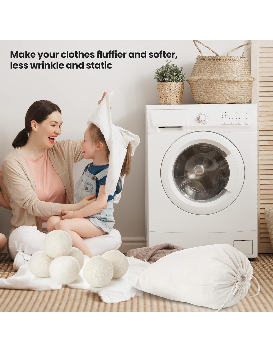 - Lo que recibirás: recibirás 24 bolas de secado de lana blancas de aproximadamente 7.62 cm de diámetro y 2 bolsas de muselina, cantidad suficiente para satisfacer tus necesidades; Ayudan a que la ropa sea esponjosa y suave, y eliminan al mismo tiempo la electricidad estática de la ropa