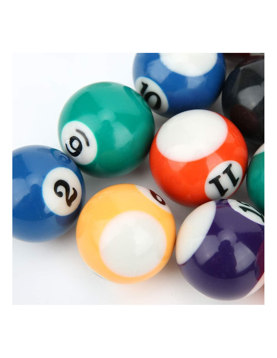 Característica: 1. Hecho de resina de poliéster ecológica, resistente a impactos y rayones. 2. Redondez y equilibrio que aseguran suavidad. 3. Incluye 15 bolas numeradas y 1 bola blanca. 4. Adecuado para salas de juegos, bares, juegos recreativos deportivos y deportes recreativos. 5. Tamaño pequeño y ligero, fácil de transportar y almacenar, conveniente de usar. Especificación: Condición: Nuevo Tipo de artículo: Bola de Billar Material: Resina de Poliéster Color: Como se muestra en las imágenes Cantidad: 16PCS Peso: Aproximadamente 538g (1.19 lb) Diámetro de la Bola de Billar: Aproximadamente 3.2cm (1.26 pulgadas) Lista de Paquete: 16 x Bola de Billar