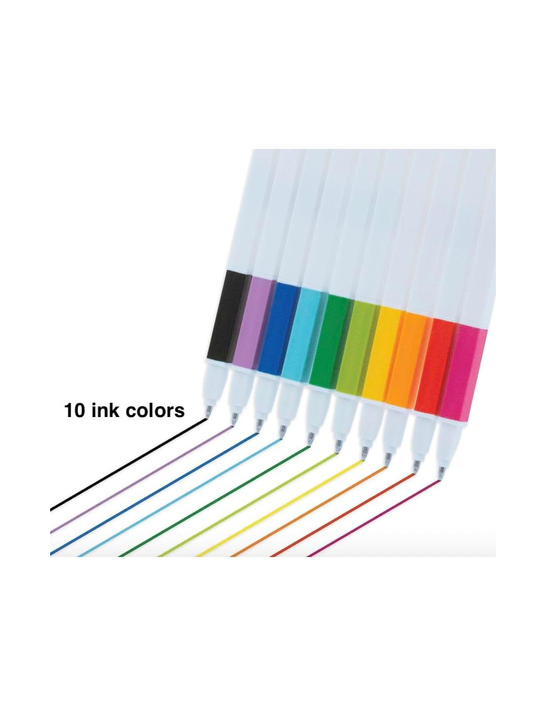 - El set incluye 10 recargas de bolígrafo de gel. 1 en cada color Rojo, Amarillo, Verde, Azul, Negro, Rosa, Naranja, Azur, Lima y Violeta.