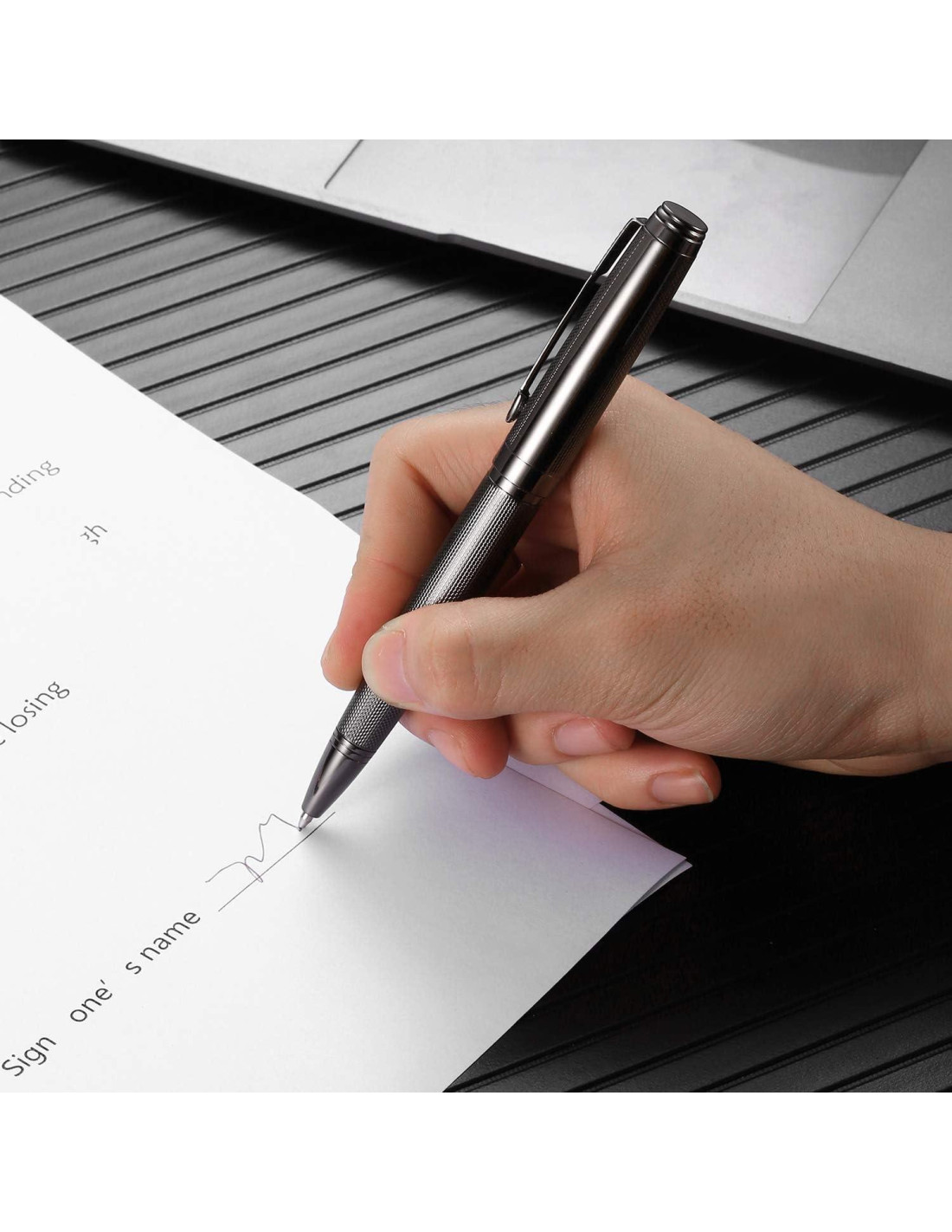 - APARIENCIA ATRACTIVA--- Acabado metálico brillante y elegante acentuado por detalles metálicos que ofrecen una buena sensación visual y táctil. Se siente sustancial y premium al escribir. Larga vida útil, el bolígrafo aún retiene su brillo y no muestra signos de desgaste.